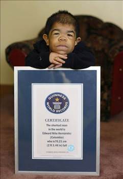 70 santimetre boyunda ve sadece 10 kilo olan Kolombiyalı Edward Nino Hernandez dünyanın en kısa boylu insanı.