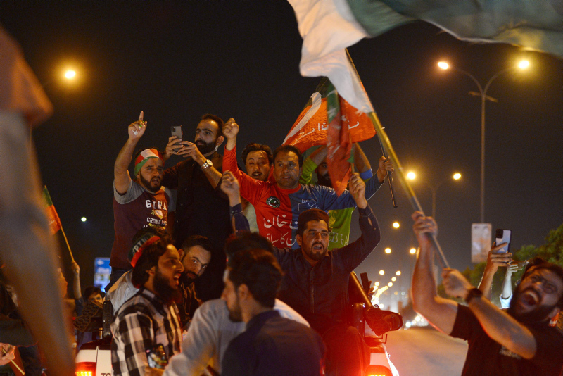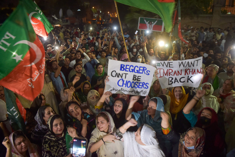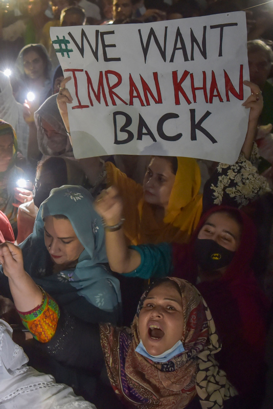 Pakistan Ulusal Meclis'inde yapılan güven oylamasında hükümetinin güven oyu alamaması üzerine görevden alınan Başbakan Imran Khan'ın destekçileri sokaklara çıkarak, kararı protesto etti.