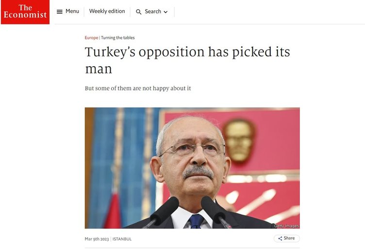 Yılın başında Başkan Erdoğan'a yönelik çirkin bir kapakla okuyucularının karşısına çıkan İngiliz merkezli The Economist Dergisi, 6'lı koalisyonun adayı Kemal Kılıçdaroğlu'nu ve Akşener krizini ele aldı.