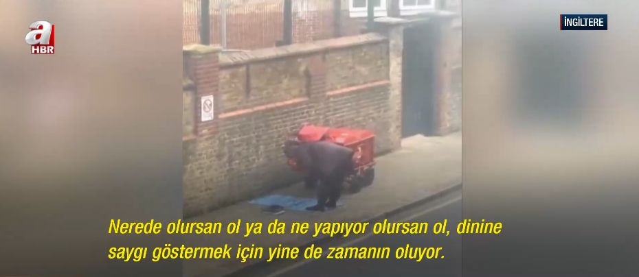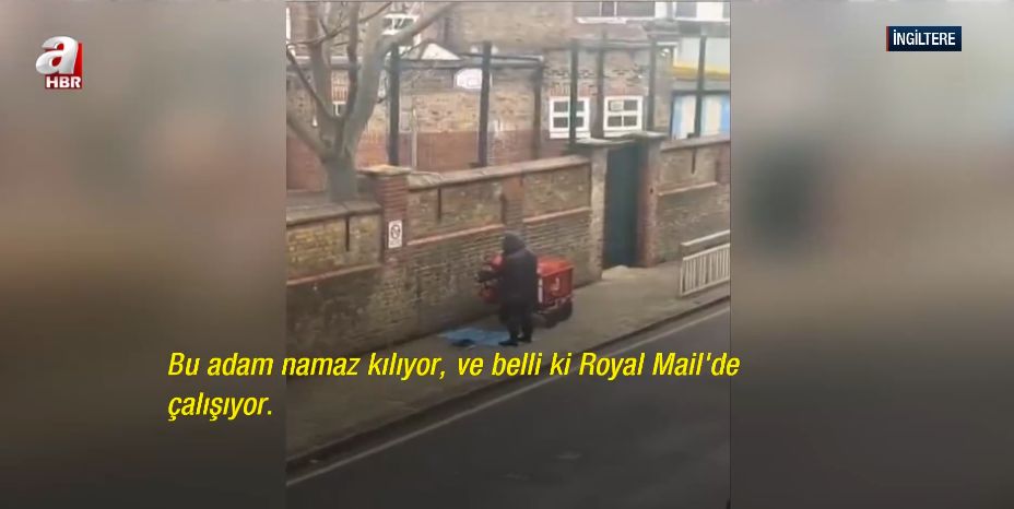 İngiltere'de İngiliz posta şirketi Royal Mail bünyesinde çalışan bir postacının, yoğun iş temposuna rağmen mesaisine kısa bir ara vererek yol kenarında namaz kıldığı anlar bir vatandaşın cep telefonu kamerasına yansıdı.