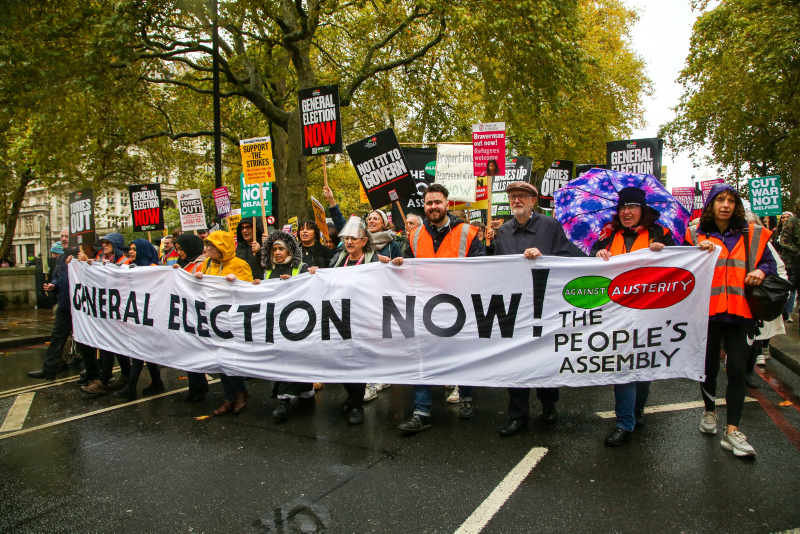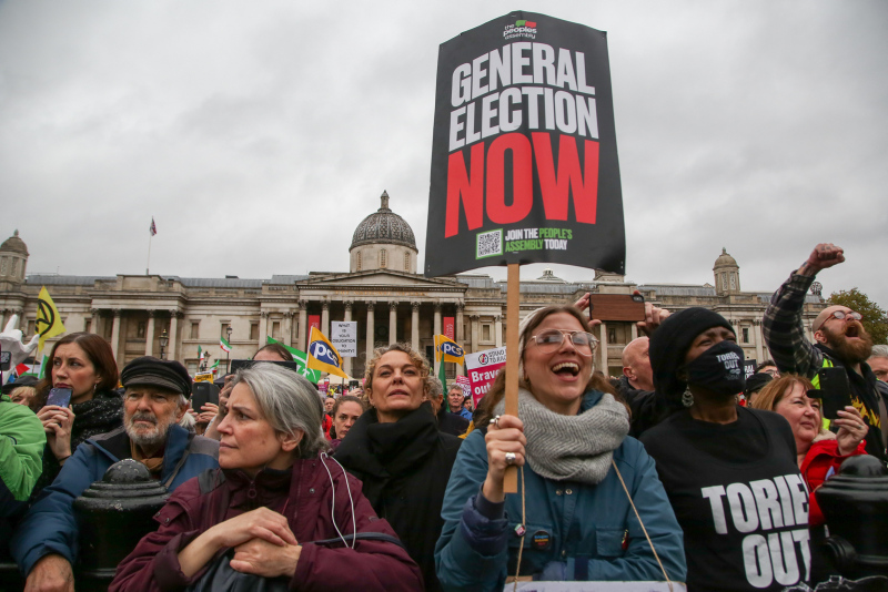 Ekonomik kriz yaşayan İngiltere'de vatandaşlar gıda ve enerji politikalarına tepki gösterdi. Kemer sıkmaya giden İngiltere'de Başbakan değişikliği de halkın öfkesini dindirmedi. Embankment tren istasyonu önünde toplanan vatandaşlar, gıda ve enerji krizi nedeniyle slogan ve pankartlarla eylem düzenledi.