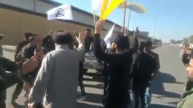ABD yönetiminin Haşdi Şabi'ye bağlı Hizbullah Tugayları'na düzenlediği saldırıyı protesto etmek isteyen yüzlerce kişi, sabah saatlerinde Bağdat'taki ABD Büyükelçiliği önünde toplanmıştı.