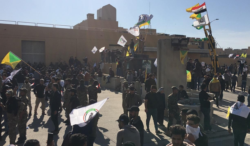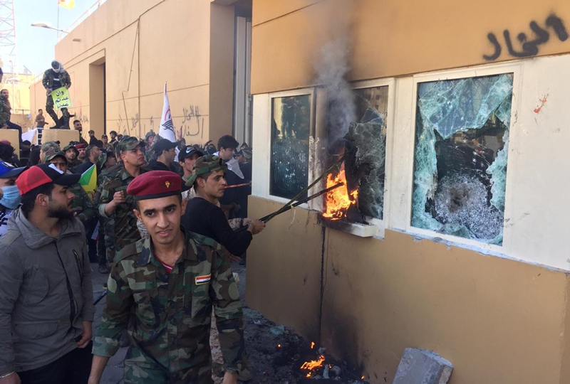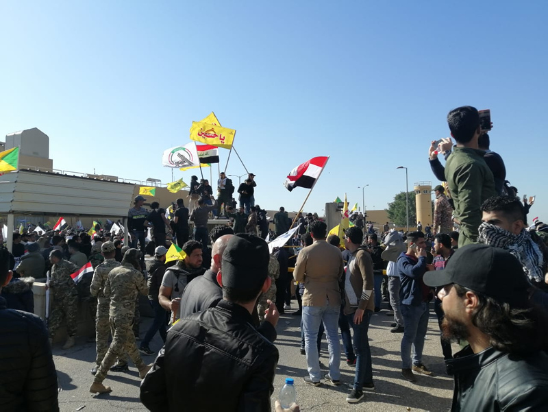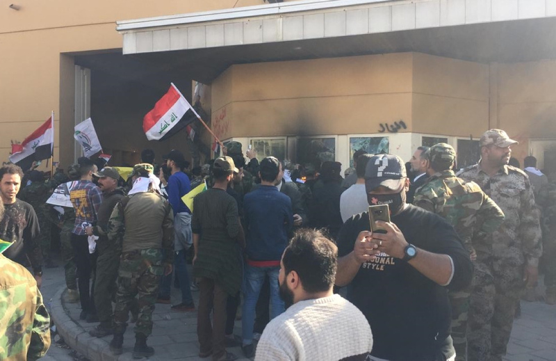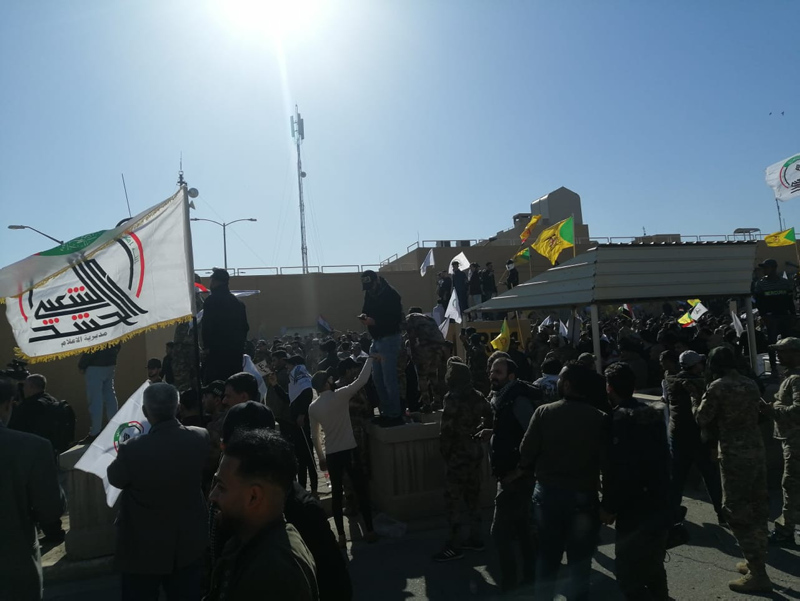 Irak'ta Haşdi Şabi yanlısı protestocular, ABD'nin Bağdat Büyükelçiliği binasını basarak içeri girdi. Protestocular, elçilik binasına girmeden önce dış duvarını ateşe vermişti. Binanın tahliye edildiği gelen bilgiler arasında.