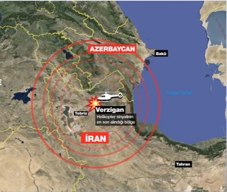 İran medyası, Reisi'yi taşıyan helikopterin Doğu Azerbaycan eyaletine bağlı Berazin ile Erdeşiri köyleri arasındaki Dizmar ormanında yoğun sis nedeniyle sert iniş yaptığını iddia etti. Bölgeye 16 arama kurtarma ekibinin sevk edildiğini ancak bölgedeki yoğun sis ve hava şartlarının elverişsizliği nedeniyle arama kurtarma çalışmalarının zaman alacağı belirtildi.