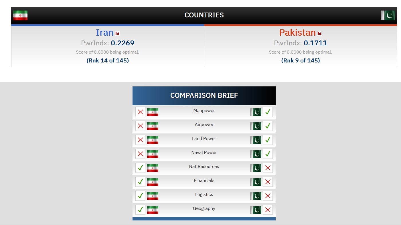 Dünya ülkelerinin askeri güçlerine ilişkin analitik veri tabanları hazırlayan Global Firepower Kuruluşu (GFP) İran ve Pakistan ordularının mevcut kapasitelerini derlendi.