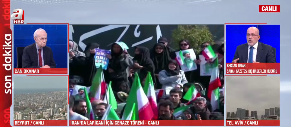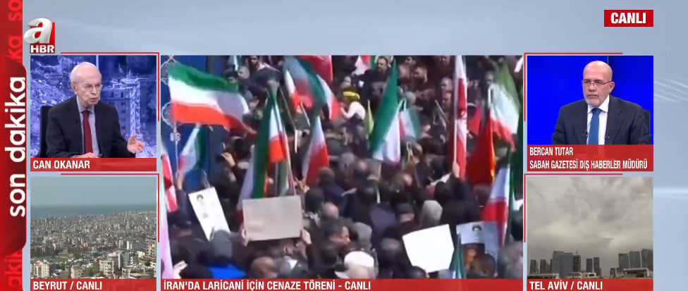Orta Doğu'da çatışmaların 19. gününde bölgede gerilim hat safhaya çıkarken, ABD ve İsrail'in saldırılarında hayatını kaybeden Ulusal Güvenlik Konseyi Sekreteri Ali Laricani ve Besic Güçleri Komutanı Süleymani için Tahran'da cenaze töreni düzenleniyor. Sabah Gazetesi Dış Haberler Müdürü Bercan Tutar, İran'daki cenaze törenlerindeki kalabalığın bile hedef olma riski taşıdığını belirterek, "Bu kalabalığın üzerine füze atılması büyük bir katliama yol açabilir, umarız böyle bir dehşet yaşanmaz" dedi.