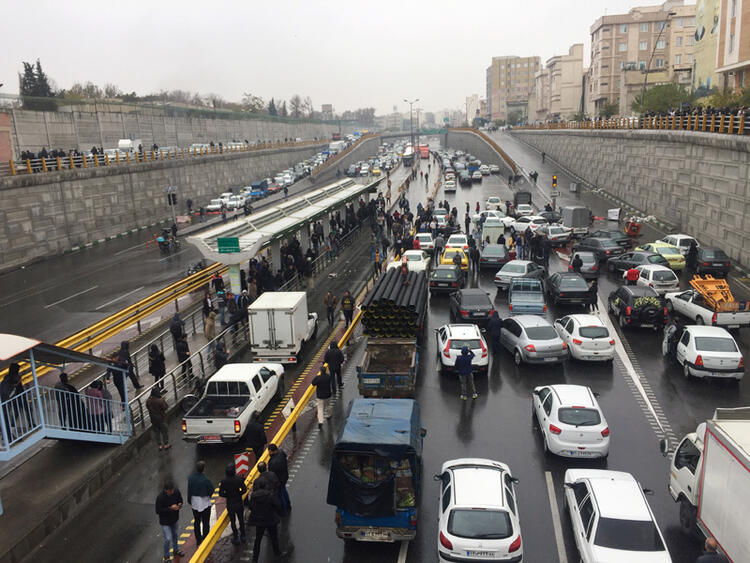 Başkent Tahran'da trafiğe çıkan sürücüler zamları kontak kapatarak protesto etti. Tahran'da göstericiler, 'Hakkımızı alırız, zilleti kabul etmeyiz' şeklinde sloganlar attı.