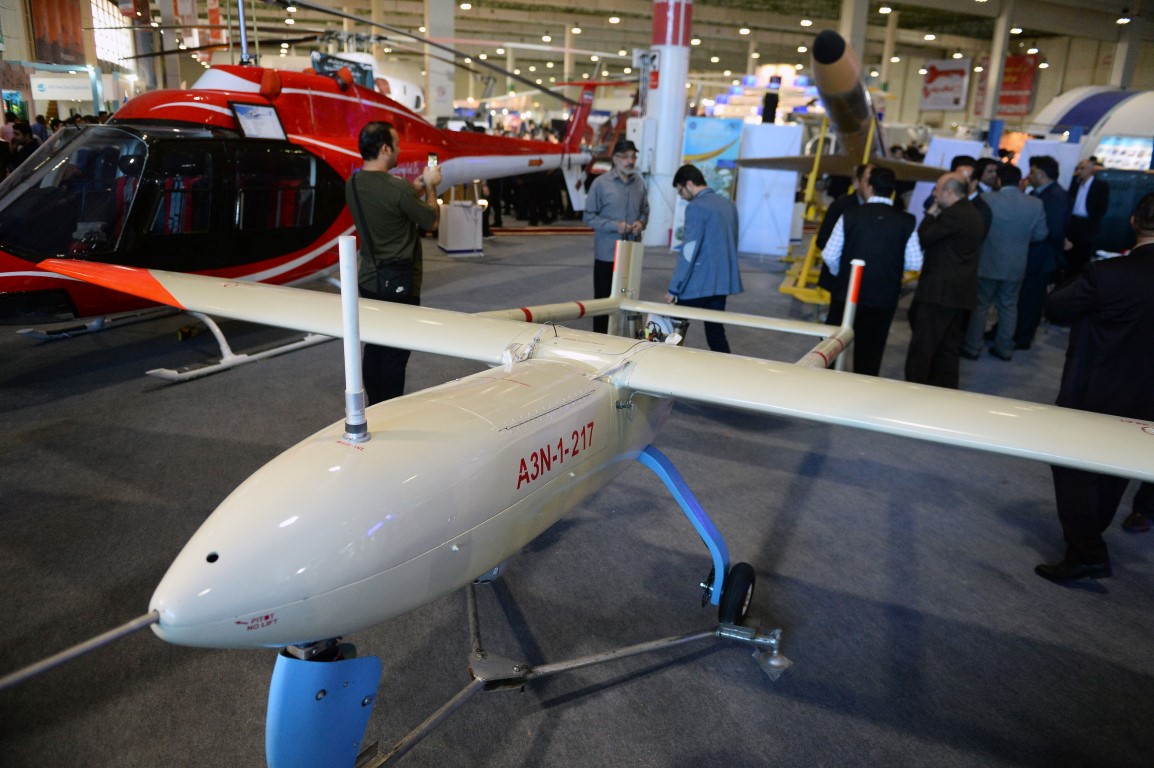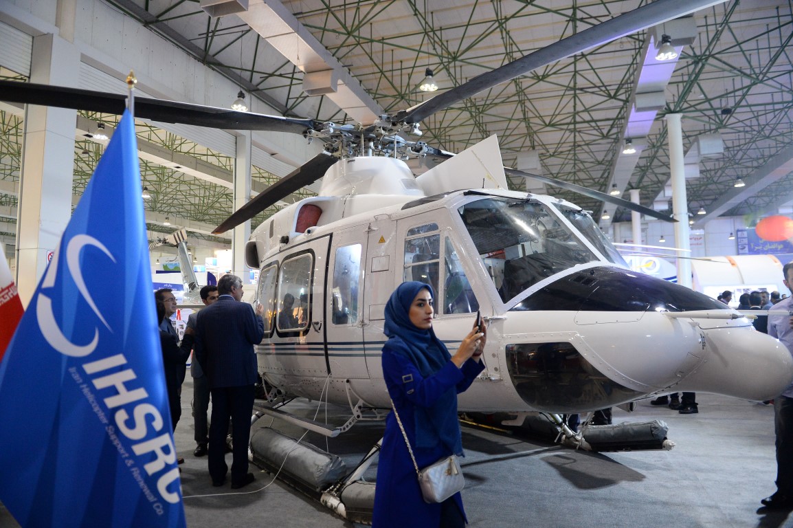 Fuarda İran savunma sanayisine ait helikopter, drone, savaş uçağı ve uçak yedek parçaları ile diğer malzemeler sergilendi.