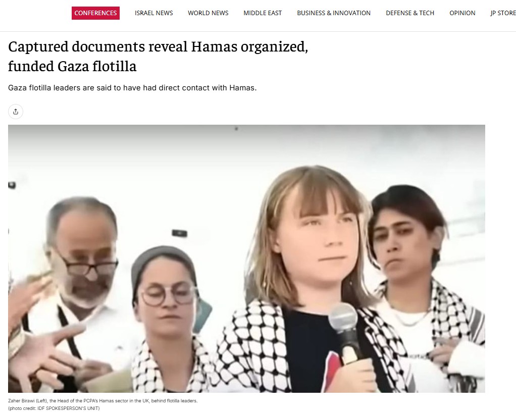 Gazete, Gazze'de ele geçirildiği öne sürülen belgeler üzerinden filonun Hamas tarafından organize edildiğini ve finanse edildiğini öne sürdü. Belgelerde, filonun liderlerinin Hamas ile doğrudan temas halinde olduğu iddia ediliyor ve bazı PCPA (Filistin Diasporası Konferansı) isimlerinin liderlik ettiği belirtiliyor.