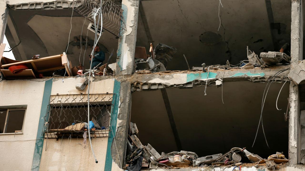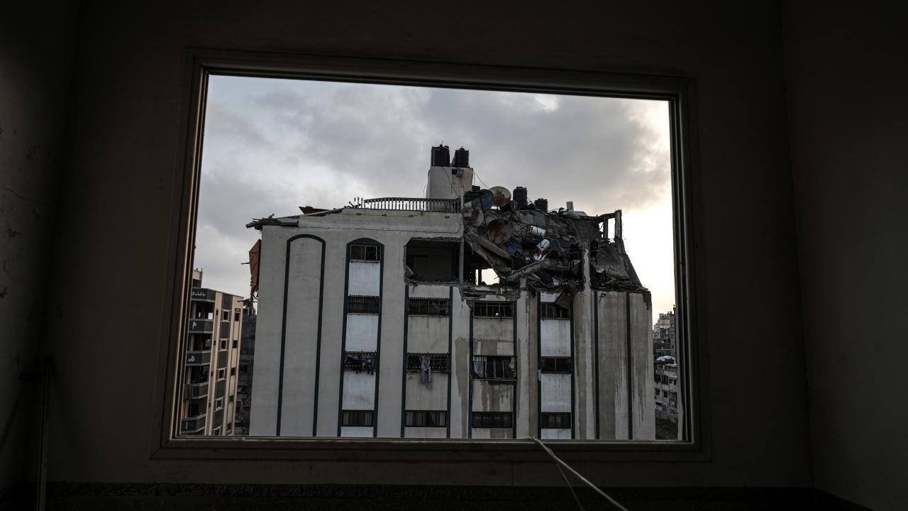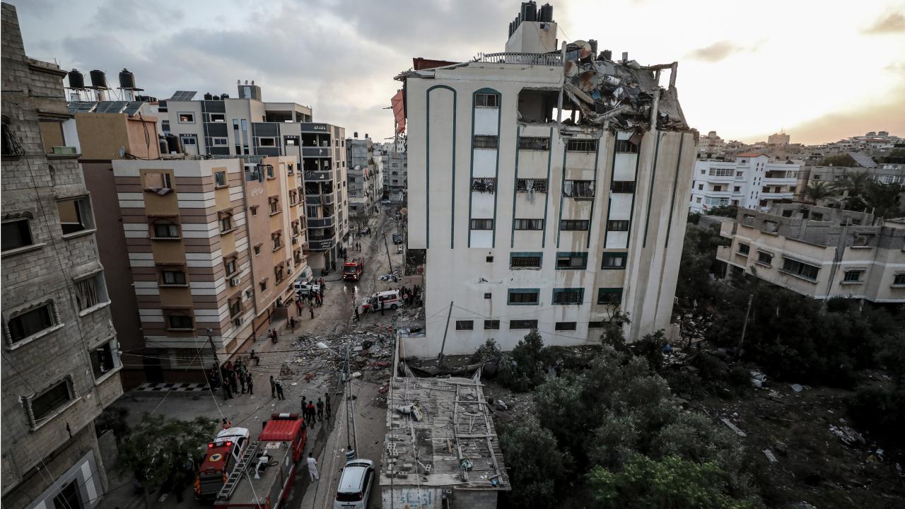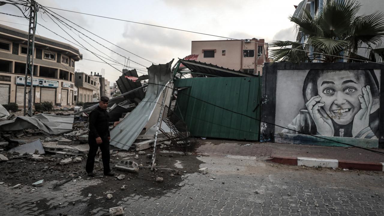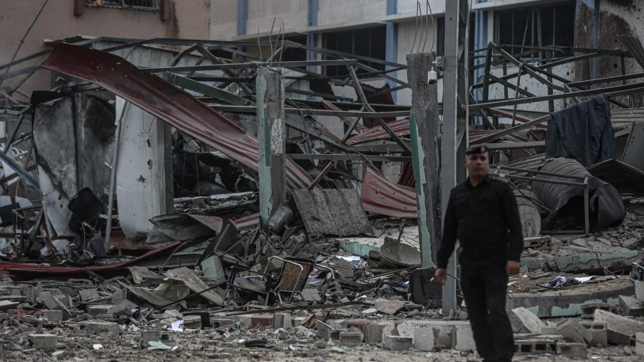 Gazze kentinin batısındaki Tel al-Hava bölgesinde İçişleri Bakanlığı`na bağlı bir merkez harabeye döndü.