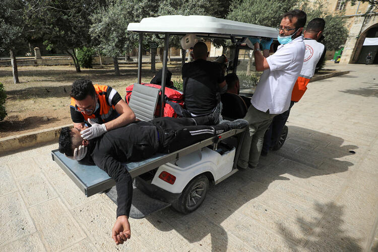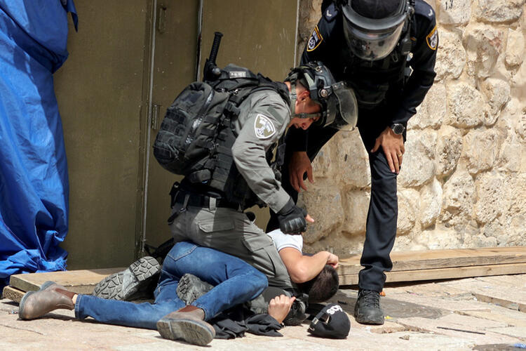 Kutsal mabede giriş yapan İsrail polisi ise biber gazı, ses bombası ve plastik mermi kullandı; yakaladığı her Filistinliyi vahşi şekilde gözaltına aldı.