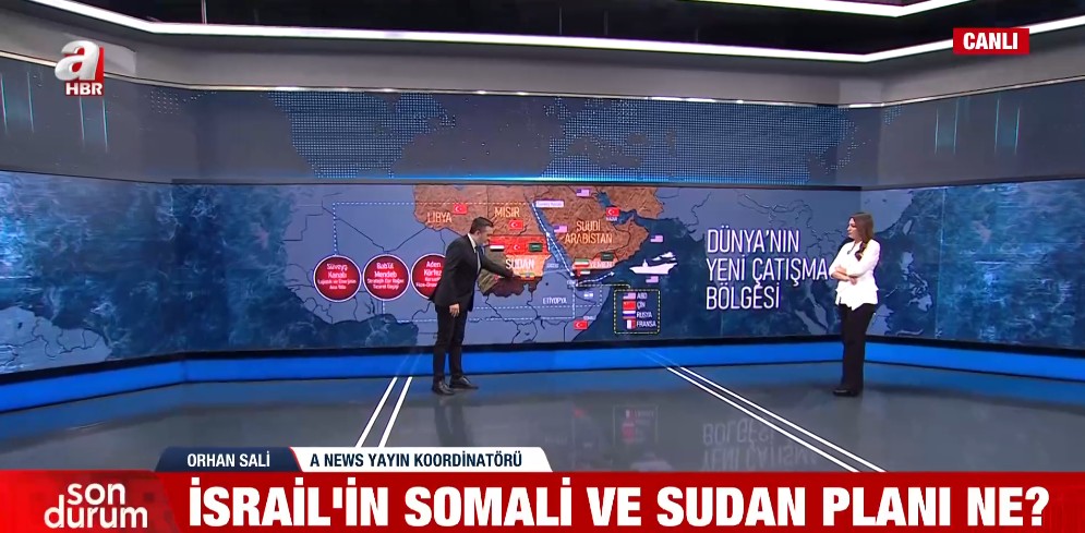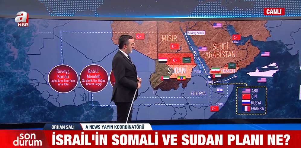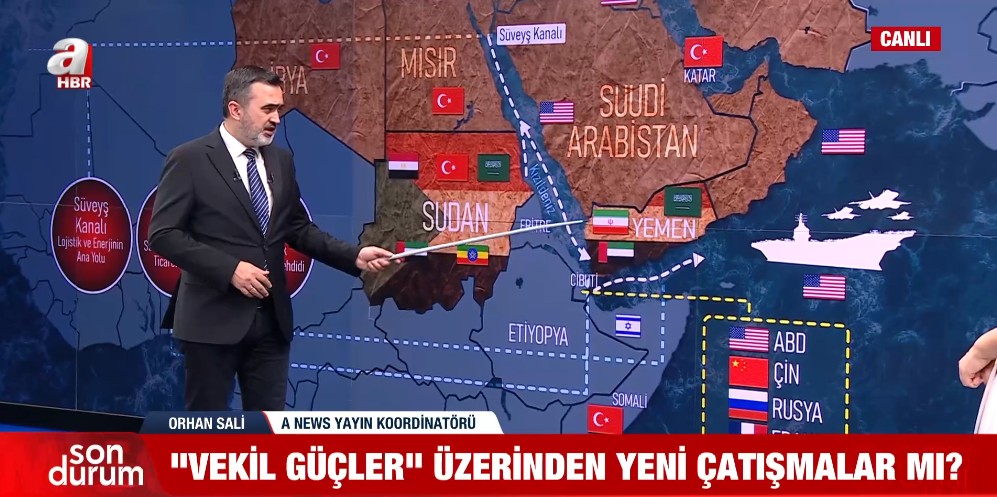 A Haber ekranlarında yayınlanan programda, dünyanın gözünü çevirdiği yeni kriz hattı masaya yatırıldı. Merve Tepe'nin sunumuyla ekrana gelen yayında, A News Yayın Koordinatörü Orhan Sali, Afrika Boynuzu ve Kızıldeniz hattında büyüyen tehlikeye dikkat çekerek çarpıcı değerlendirmelerde bulundu.