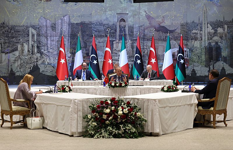 2 Temmuz'da İstanbul'da gerçekleşen ve düzensiz göç ile bölgesel iş birliği başlıklarının öne çıktığı üçlü zirvede, Başkan Recep Tayyip Erdoğan, İtalya Başbakanı Giorgia Meloni ve Libya Başbakanı Abdülhamid Dibeybe bir araya geldi.
