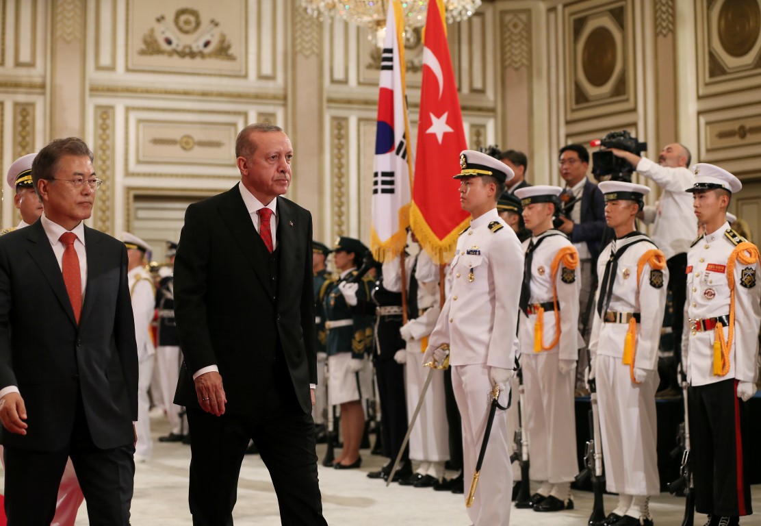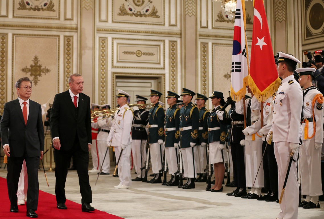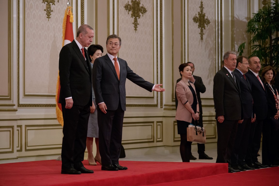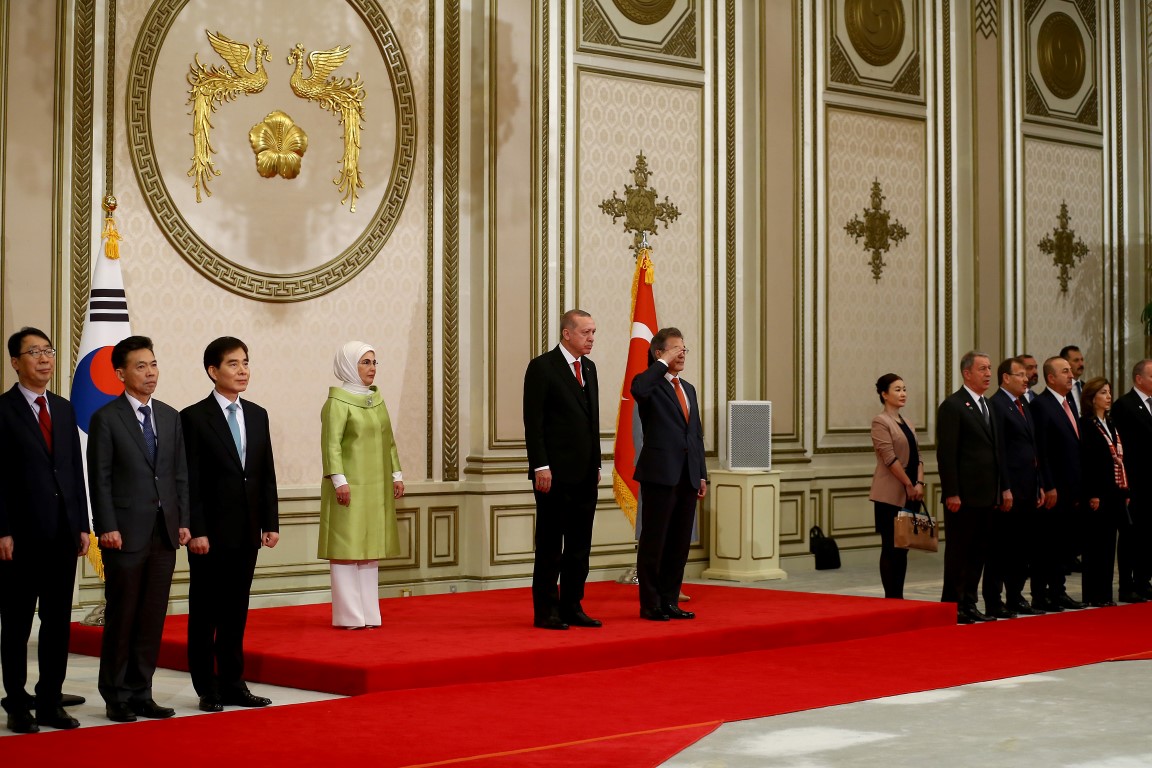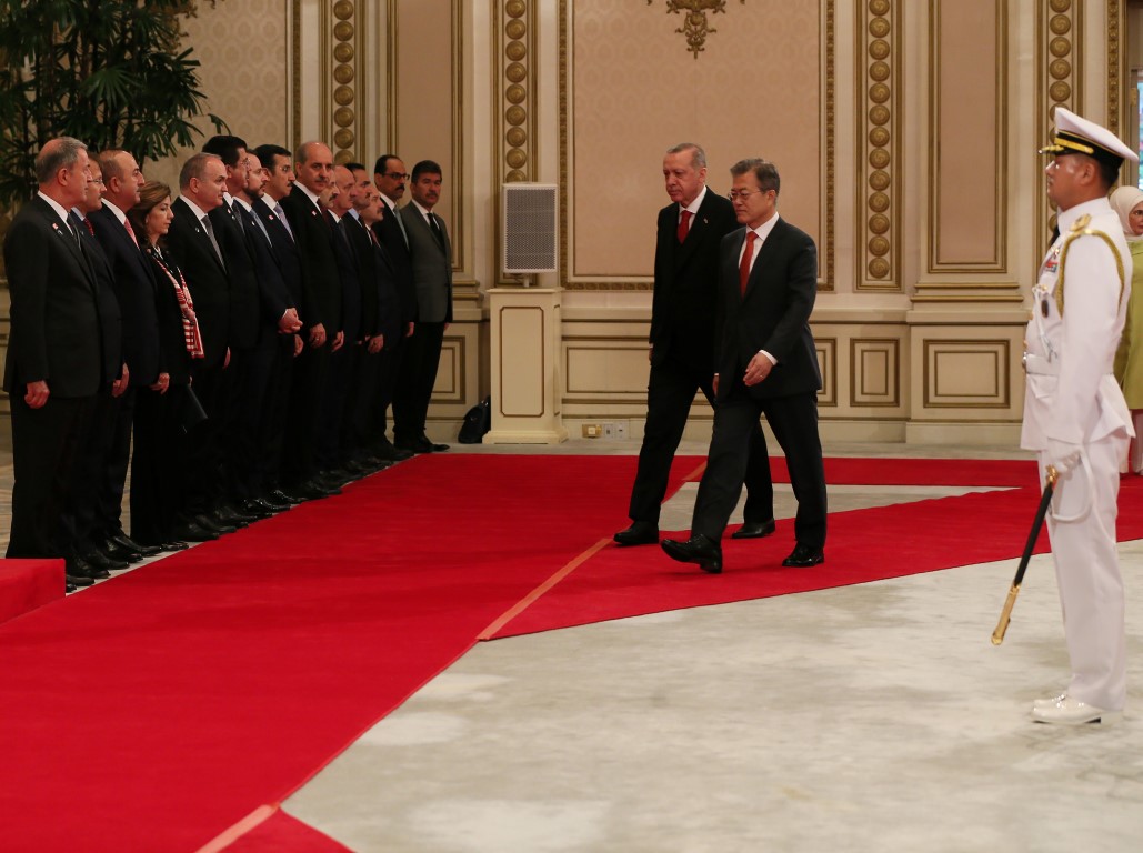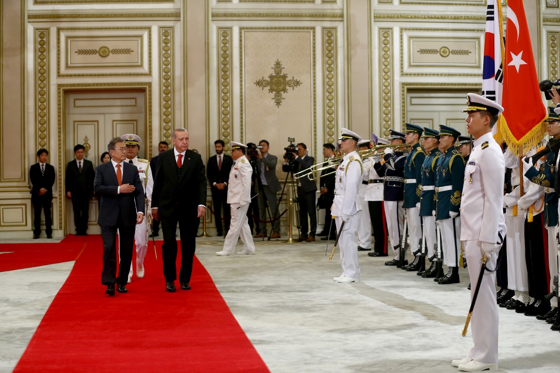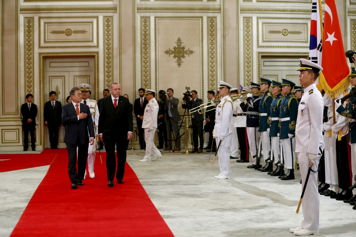 Cumhurbaşkanı Recep Tayyip Erdoğan, Güney Kore Cumhurbaşkanı Moon Jae-in tarafından resmi törenle karşılandı.