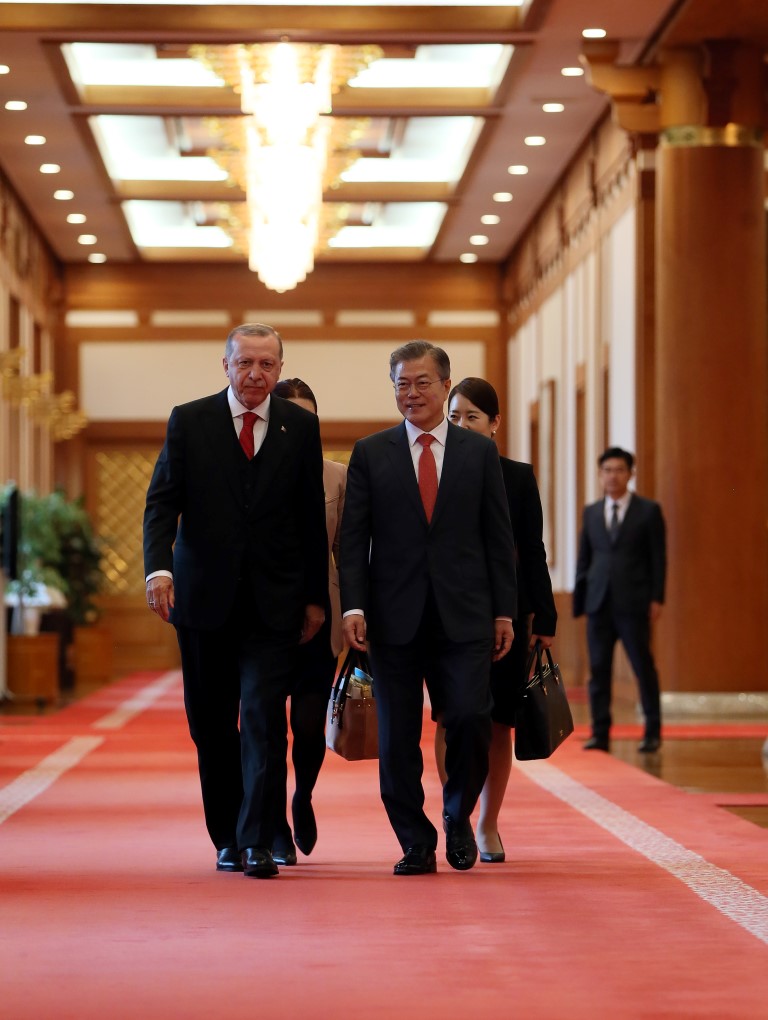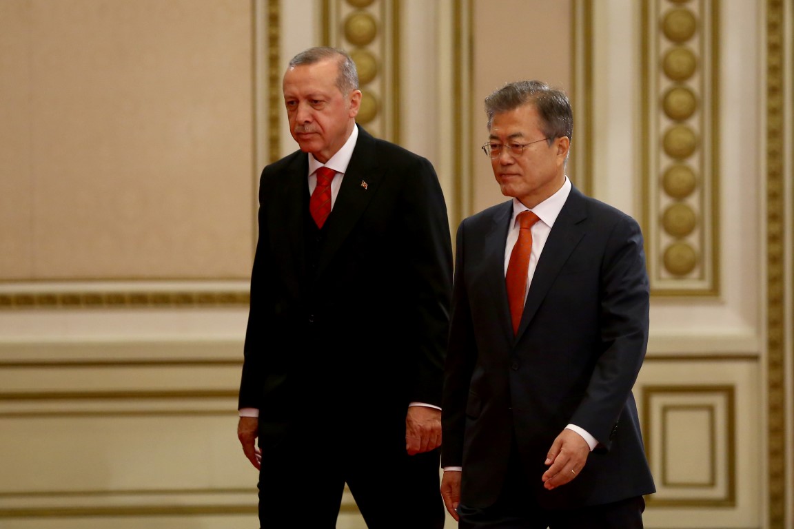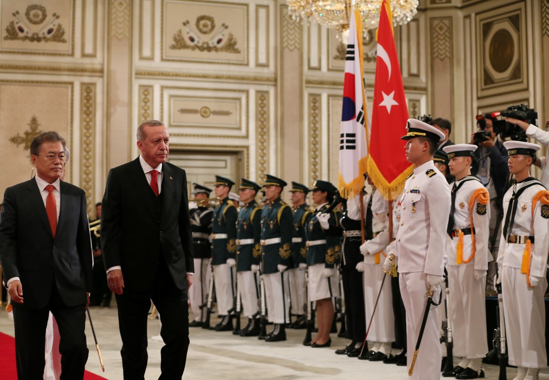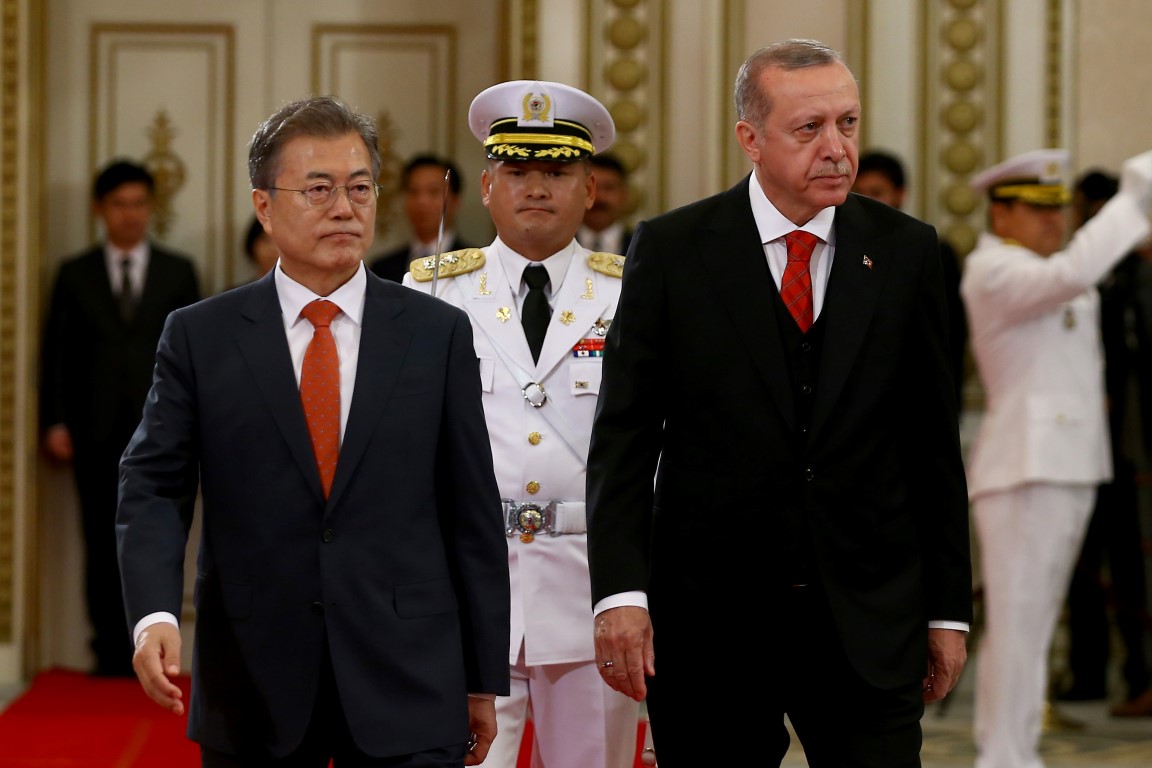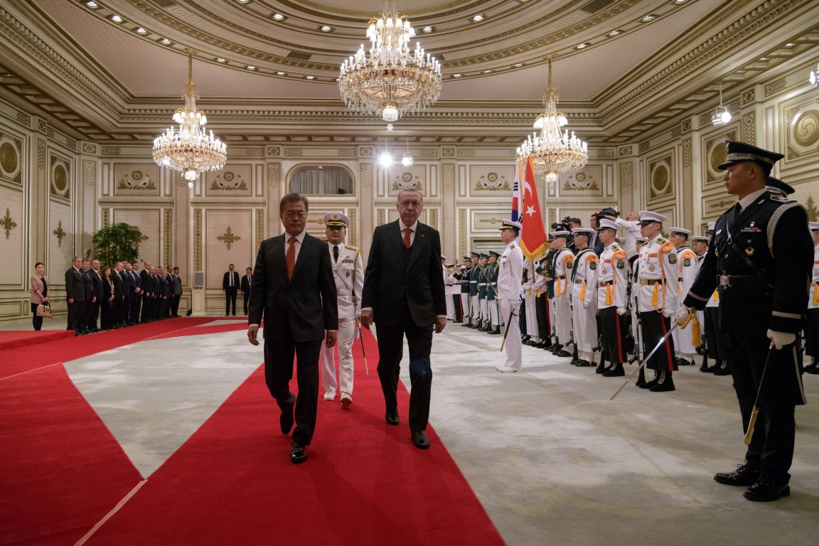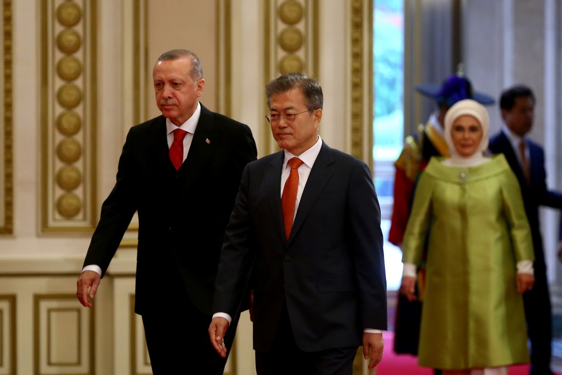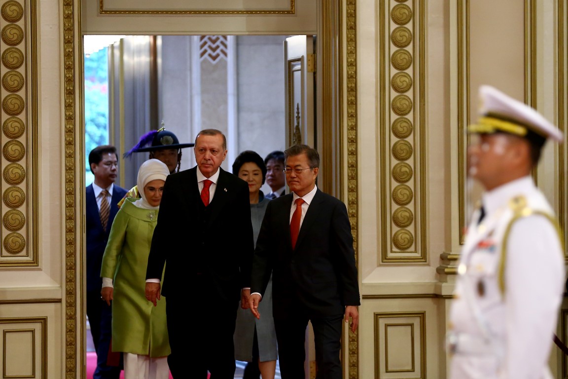 Cumhurbaşkanı Recep Tayyip Erdoğan, Güney Kore Cumhurbaşkanı Moon Jae-in tarafından resmi törenle karşılandı.