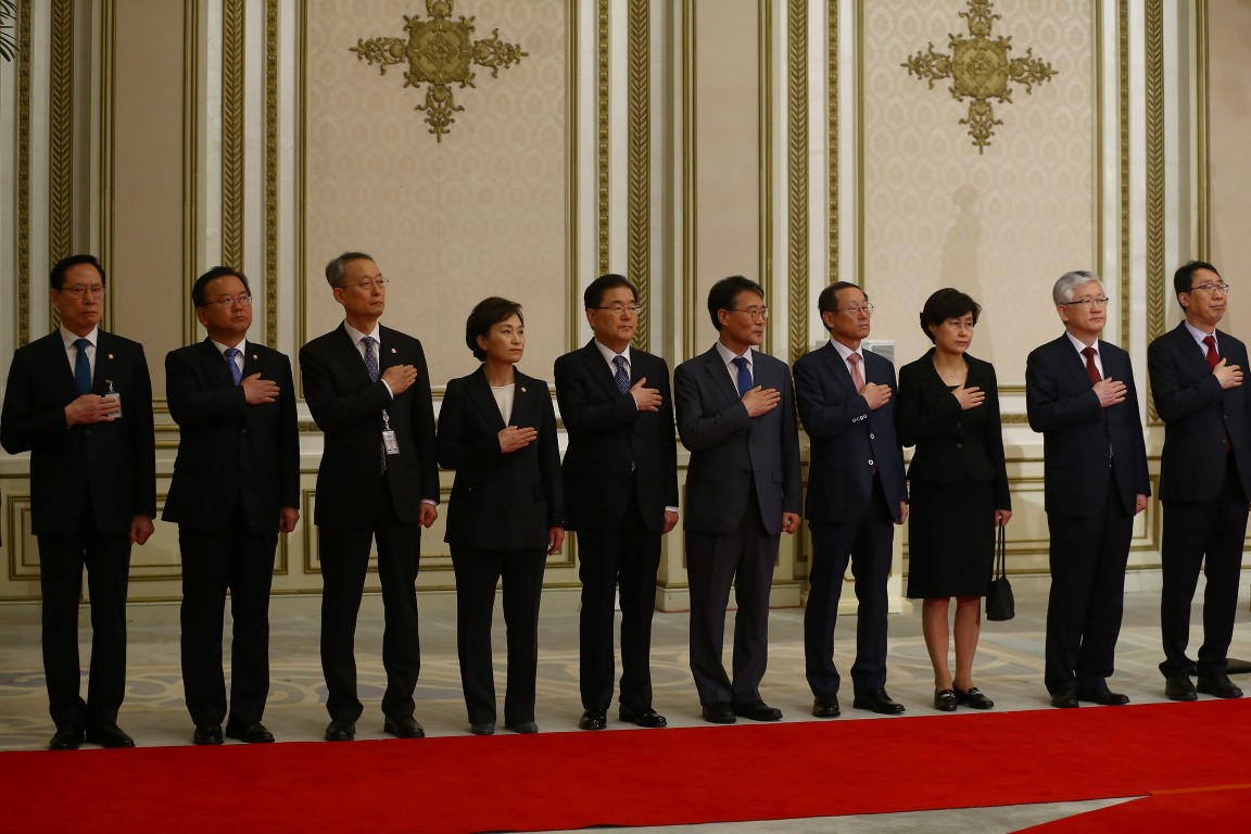 Cumhurbaşkanı Erdoğan ile eşi Emine Erdoğan, Genelkurmay Başkanı Orgeneral Hulusi Akar, Adalet Bakanı Abdulhamit Gül, Bilim, Sanayi ve Teknoloji Bakanı Faruk Özlü, Dışişleri Bakanı Mevlüt Çavuşoğlu, Enerji ve Tabii Kaynaklar Bakanı Berat Albayrak, Ekonomi Bakanı Nihat Zeybekci, Gümrük ve Ticaret Bakanı Bülent Tüfenkci, İçişleri Bakanı Süleyman Soylu, Kültür ve Turizm Bakanı Numan Kurtulmuş, MİT Müsteşarı Hakan Fidan, Cumhurbaşkanlığı Sözcüsü İbrahim Kalın ve Diyanet İşleri Başkanı Ali Erbaş da Güney Kore'ye geldi.