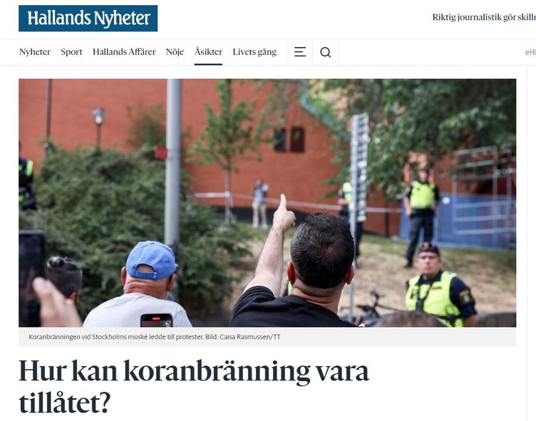 Hallands Nyheter'deki haberde ise 'Hükümetimiz bile ses çıkaramıyor. İsveç ülkesi nereye gidiyor?' ifadeleri kullanıldı 'İfade özgürlüğünün bir sınırı var mı?' diye soruldu.