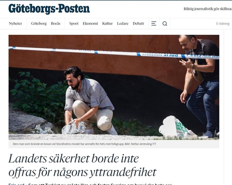 Göteborgs-Posten'de yer alan bir haberde, 'Birkaç kişinin ifade özgürlüğünün ülke güvenliğinden daha önemli olması son derece dikkat çekicidir.' denildi. Birçok ülkede kutsal kitaplar başta olmak üzere önemli sembollere zarar vermenin ifade özgürlüğü kapsamında yer almadığı hatırlatıldı.