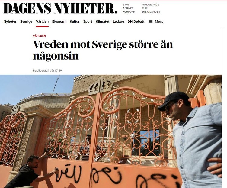 Dagens Nyheter, 'İsveç'e öfke her zamankinden büyük olabilir' dedi. Haberde, Arap ülkelerin İsveç ürünlerini boykot etmenin yanı sıra siyasi önlemler almaya hazırlanıyor' denildi.