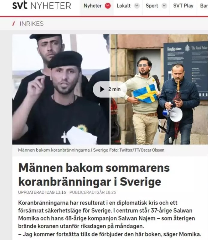Stockholm'de Irak asıllı Salwan Momika da Kurban Bayramı'nın birinci gününe denk gelen 28 Haziran'da, Stockholm Camisi önünde polis koruması altında Kur'an-ı Kerim yakmıştı.