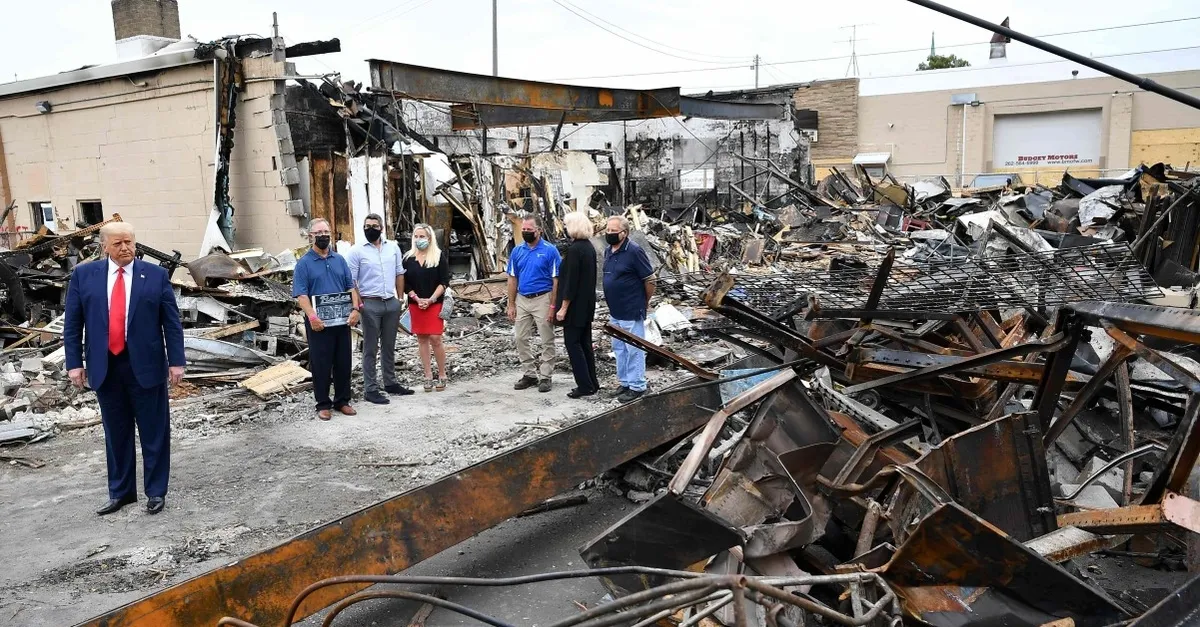 Beraberinde Adalet Bakanı William Barr ve İç Güvenlik Bakan Vekili Chad Wolf ile kentteki olaylardan zarar gören ve yakılan iş yerlerini gezen Trump, "Buraları onaracağız, insanların iş yerlerini yeniden inşa etmelerine yardım edeceğiz." vaadinde bulundu.