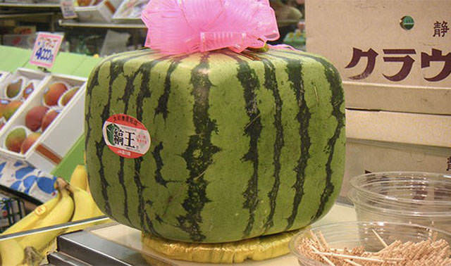 Japonya'da özel kafesler ile üretilen kare karpuzlar ülkede ve çevre bölgelerde büyük ilgi görüyor. Taşıma ve koruma kolaylıklarına da sahip olan küp karpuzların tadının normal karpuza göre farklılığı bulunmuyor.