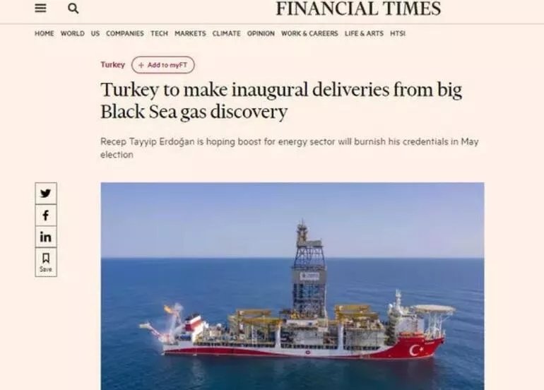 ABD medyası Sakarya sahasının Karadeniz'de keşfedilen en büyük doğalgaz kaynağı olduğunu vurgularken Bloomberg 'Türkiye seçim öncesi enerji hediyesi için sahne kuruyor' başlığını kullandı.