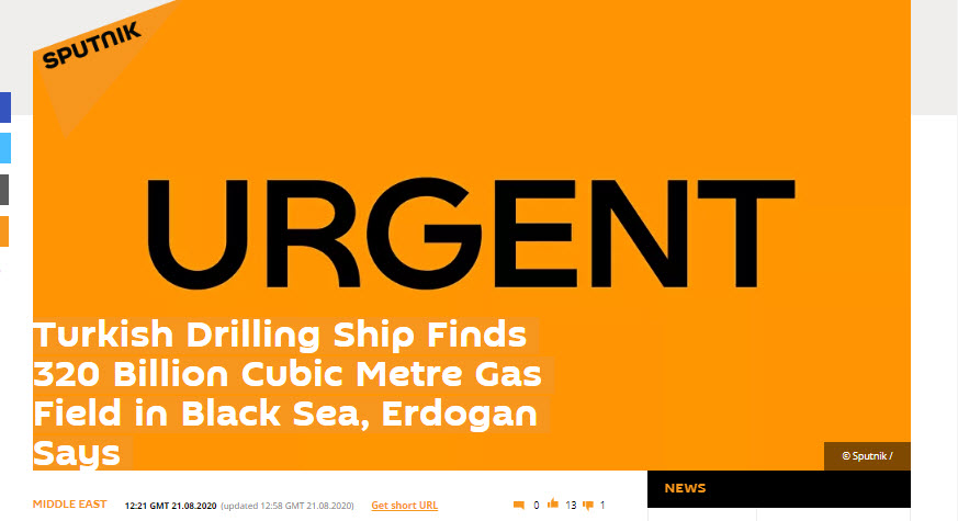 Rusya merkezli Sputnik`te Cumhurbaşkanı Erdoğan`ın bölgede başka doğalgaz kaynaklarının bulunma ihtimalinin yüksek olduğu açıklamasına dikkat çekildi.