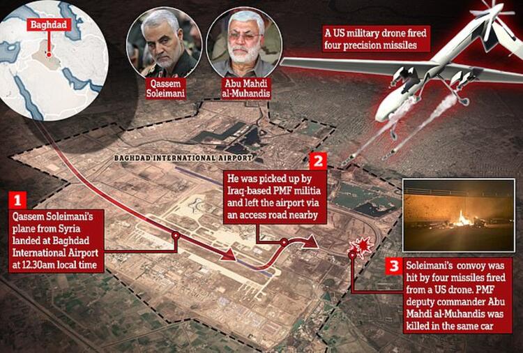 Haberde ayrıca, "Süleymani'yi taşıyan Cham Wings Havayolları'na ait A320 uçağı iniş yaptığında, ABD'nin askeri personelinin bulunduğu Irak'ın başlıca havalimanındaki Amerikalı ajanlar onun nerede olduğunu tam olarak doğruladı."