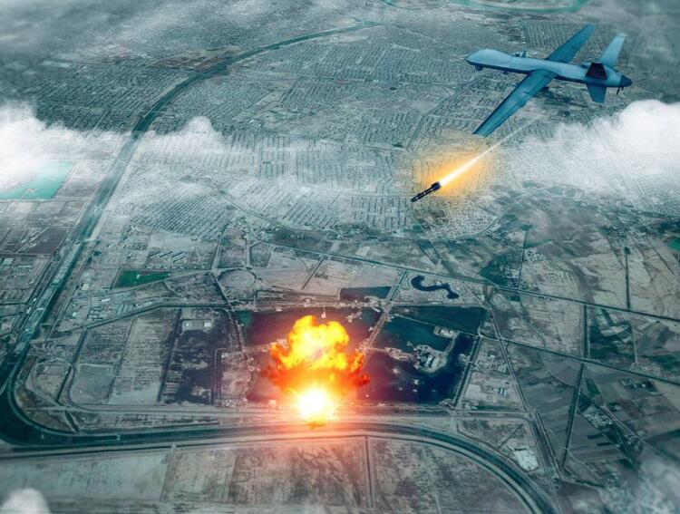 "Tamamen ABD ordusunun kontrolündeki Irak hava sahasında hiçbir zorluk yaşamayacaklarından emin üç Amerikan insansız hava aracı tepede pozisyon aldı. Her biri 4 adet cehennem ateşi füzesi taşıyordu" bilgisi paylaşıldı.