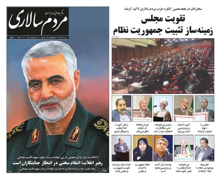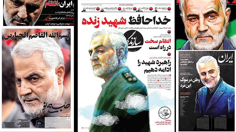 İran gazetelerinin çoğu 'İntikam' manşetleriyle çıktı. Olayı bir 'terör saldırısı' olarak nitelendiren gazeteler, Kasım Süleymani için 'İslam'ın Büyük Komutanı, 'Yaşayan Şehit' ve 'Süper Kahraman' gibi sıfatlar kullandı.