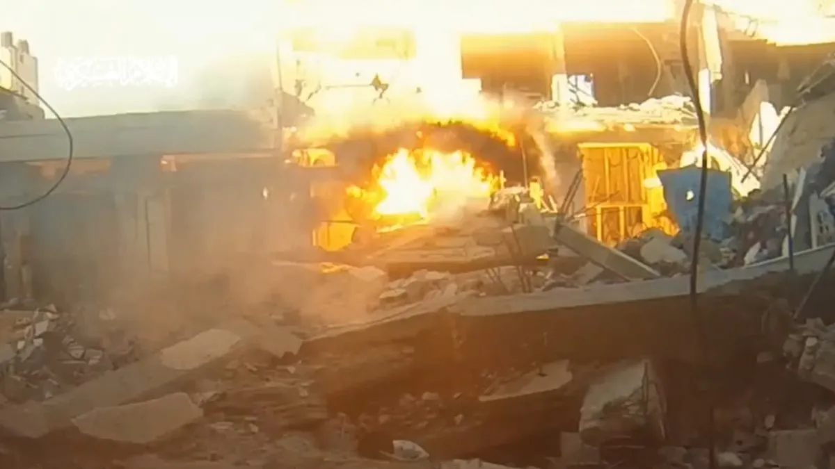 Kassam Tugayları, bir adet patlayıcıyla imha ettikleri işgalci İsrail tankının havaya uçtuğu anları yayınladı.
