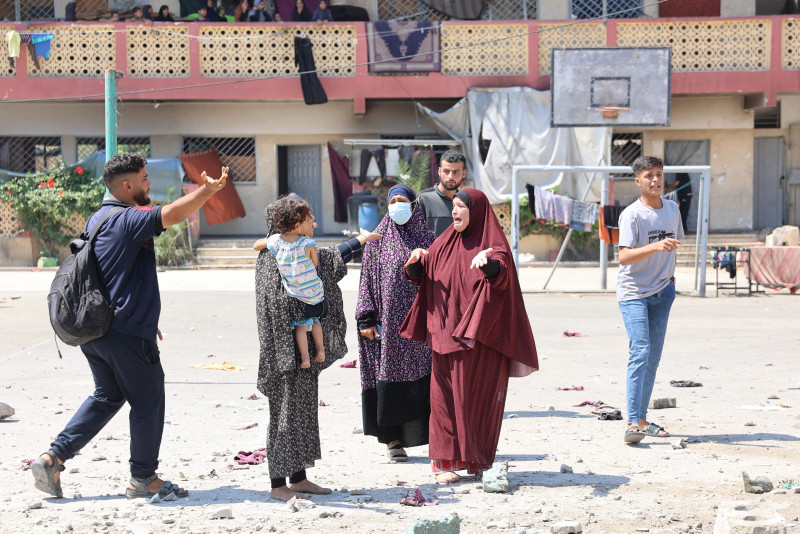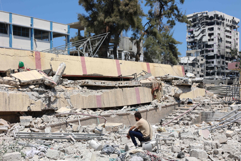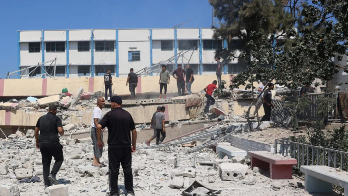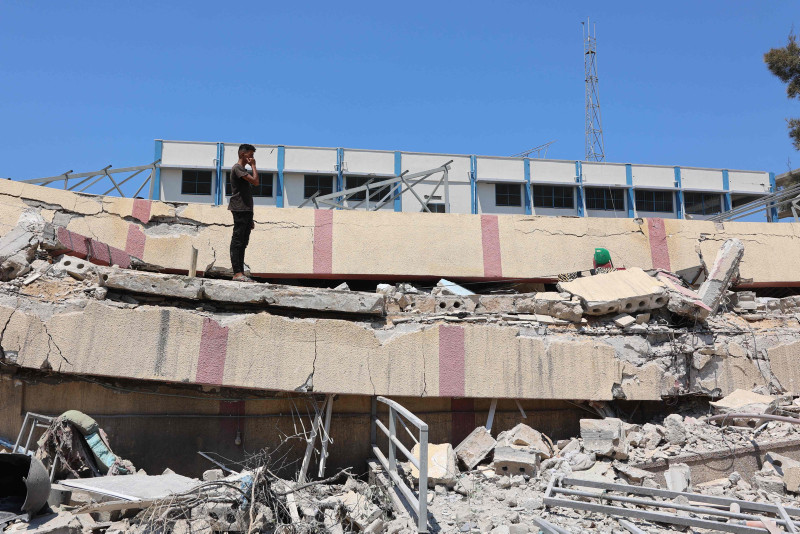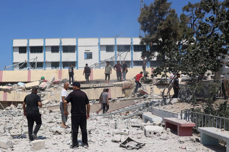 Görgü tanıklarının aktardığına göre, İsrail'in bombardımanında, aralarında çocuk ve kadınların da bulunduğu zorla yerinden edilmiş 700 kişinin sığındığı okul binalarından biri yıkıldı.