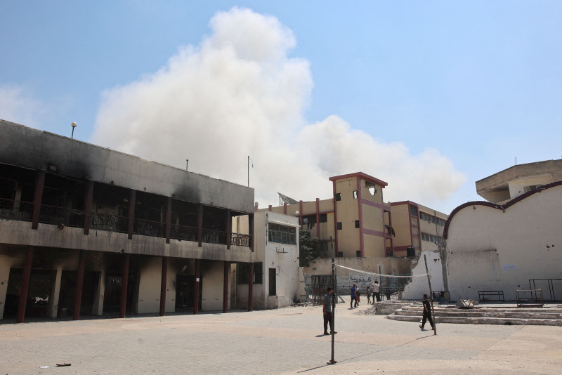 İsrail ordusunun Gazze Şeridi'nin kuzeyindeki Gazze kentinin batısında yer alan Er-Rimal Mahallesi'nde yerinden edilen Filistinlilerin sığındığı bir okula düzenlediği bombalı saldırıda 10 Filistinli hayatını kaybetti.
