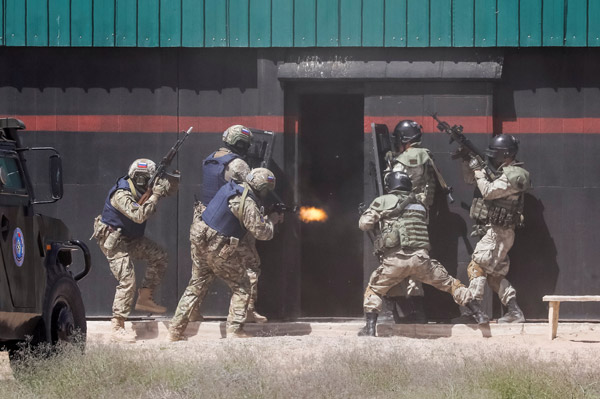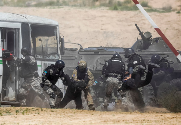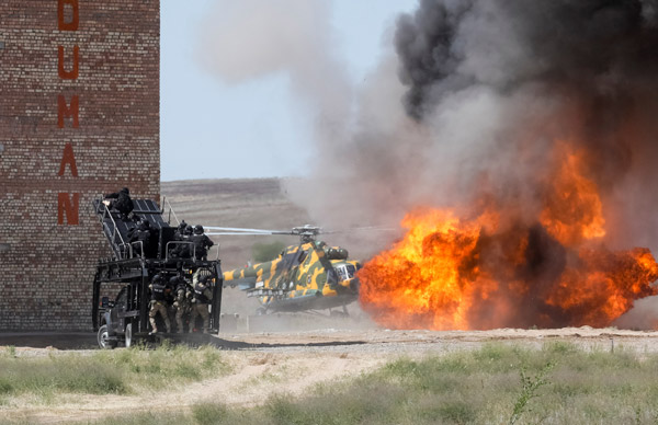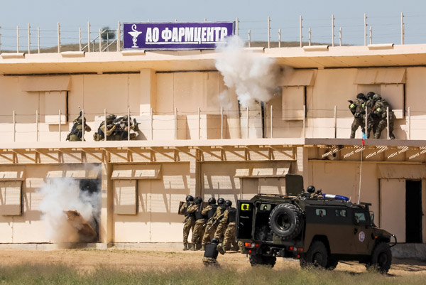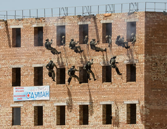 Görüntüler Orta Asya ülkesi Kazakistan'dan... Nefes kesen uluslararası tatbikata katılan ülkeler arasında Kazakistan'ın yanında Rusya, Kırgızistan ve Tacikistan'ın ait özel kuvvetler askerleri de var. Kazakistan'ın başkenti Almatı'nın dışındaki ortak tatbikatta, Kolektif Güvenlik Anlaşması Örgütü üyesi ülkelerin helikopterleri de sahne aldı.