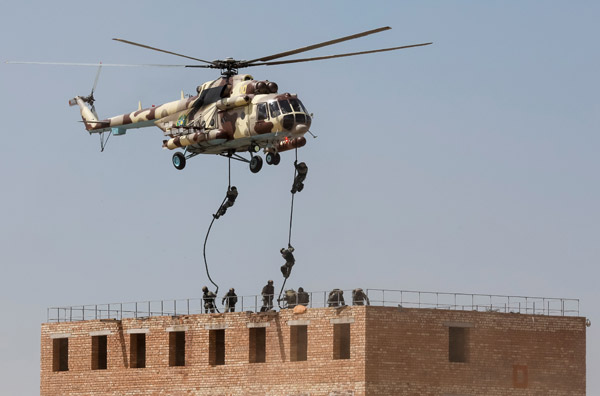 Özel kuvvetler askerleri, helikopterden bir binanın üzerine indi. Sonraki hedef, askerlerin aşağıya ulaşmasıydı.