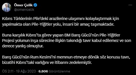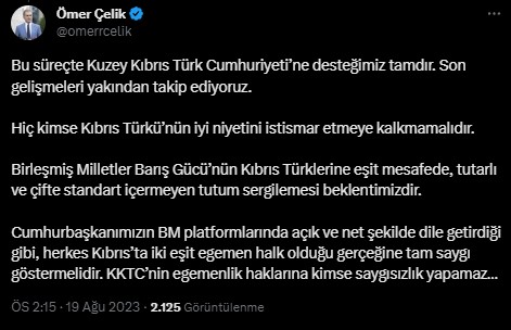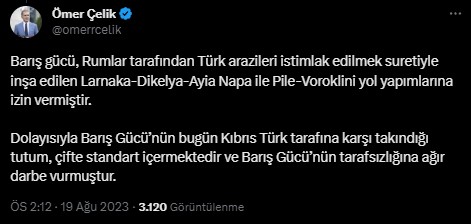 "BMBG'nin açıklaması ve bazı ülkelerin benzer açıklamalarında, yaşanan durum çarpıtılmakta BM askerine ve araçlarına saldırıda bulunulduğu iddia edilmektedir. Bu iddialar asılsızdır. Sahada sadece polisimiz bulunmaktadır ve KKTC topraklarında bulunan polisimizin görevi yol çalışmalarını gerçekleştiren sivil ekibin güvenliğini sağlamaktır.""Bölgede meydana gelen gerginlik BM askerleri ve personelinin tutumu ve yol yapımını sürdüren ekibimiz ve bu ekibin güvenliğini sağlayan polisimize yaptığı fiziksel müdahale ve engellemelerden kaynaklanmıştır."