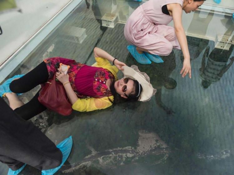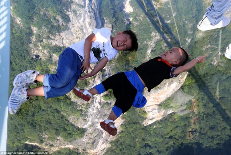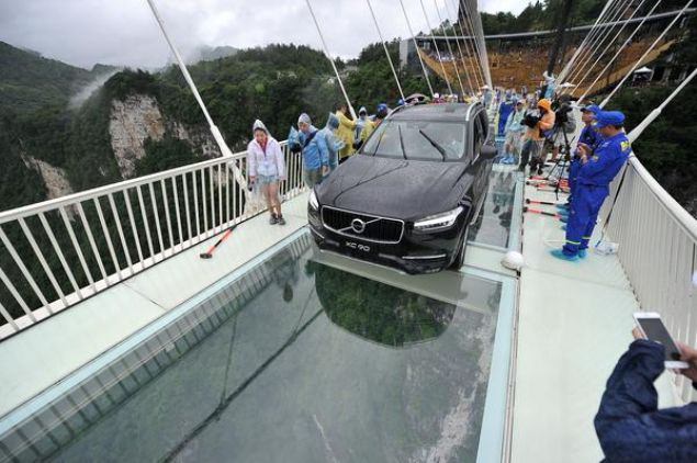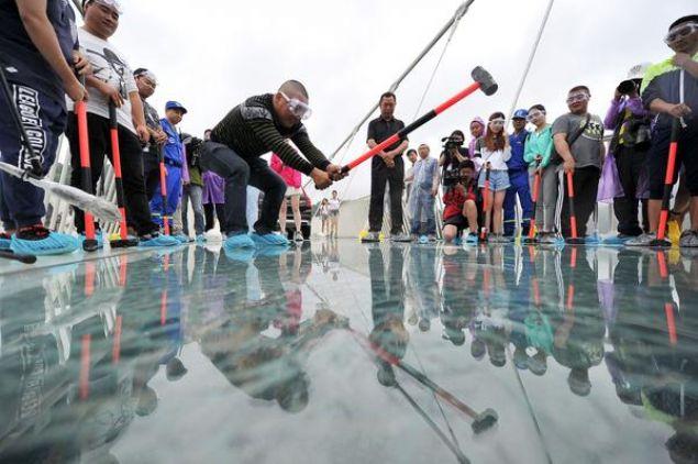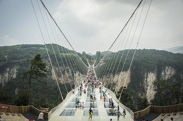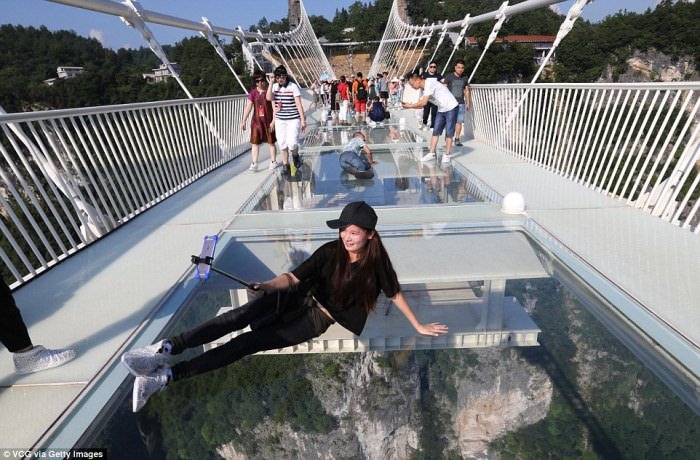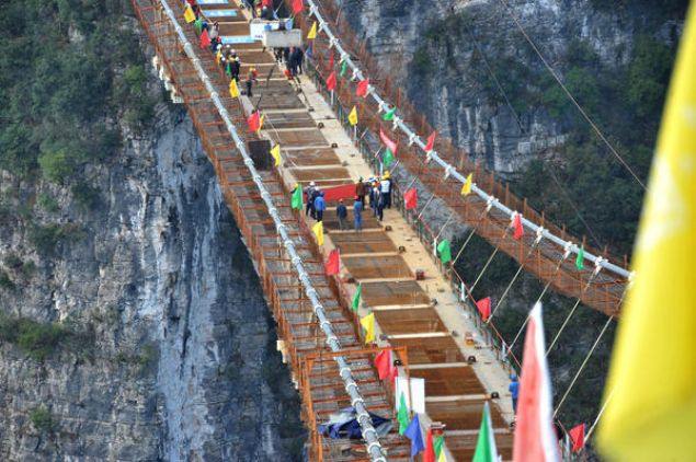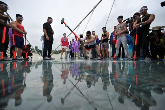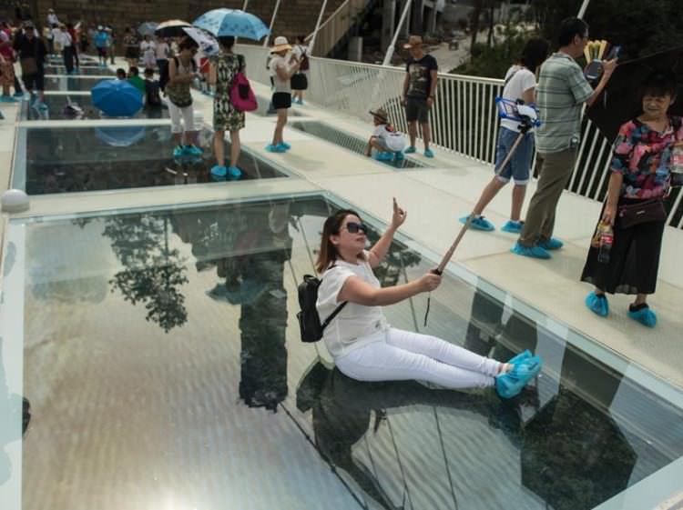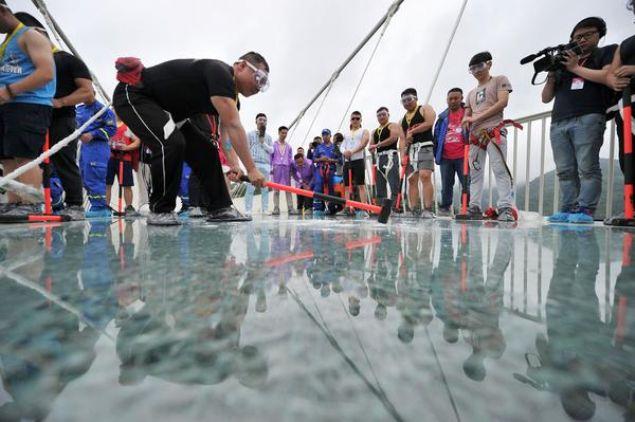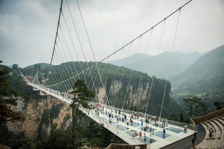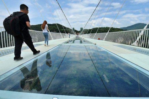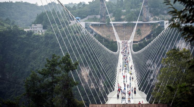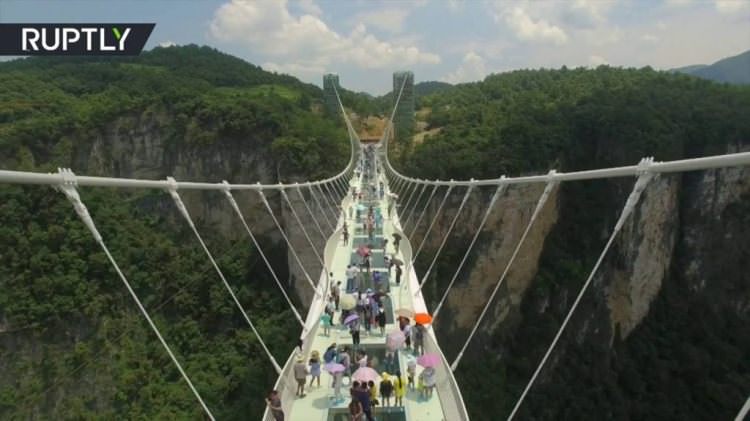 Çin'in Hunan eyaletinde 13 gün önce açılan dünyanın en uzun ve en yüksek cam zeminli köprüsü yoğun turist sayısı nedeniyle bakıma alındı.