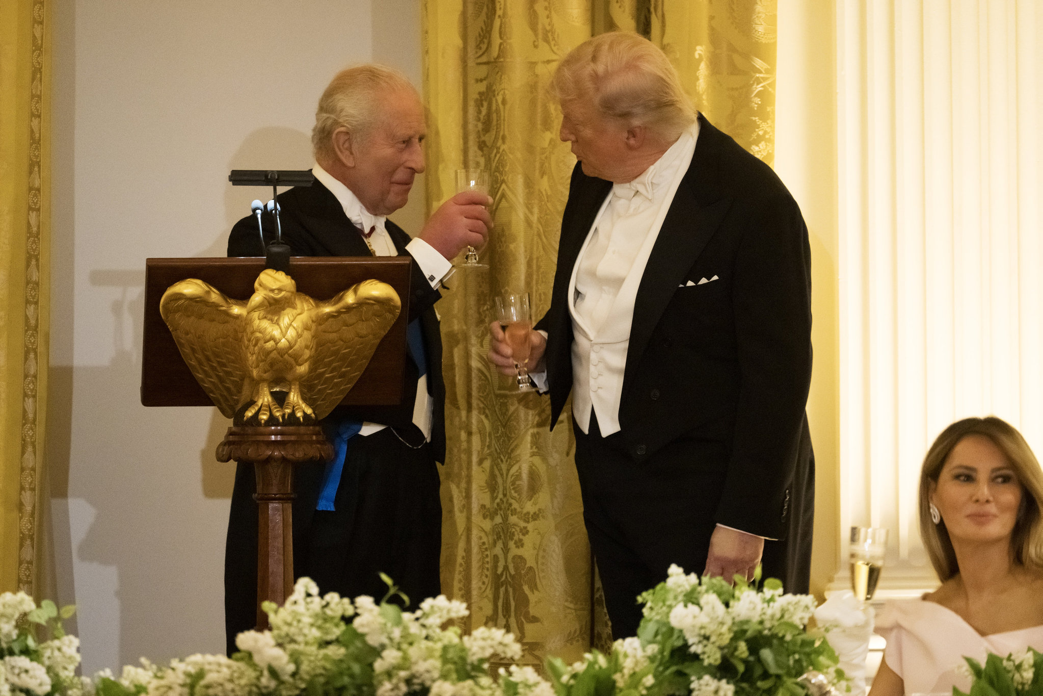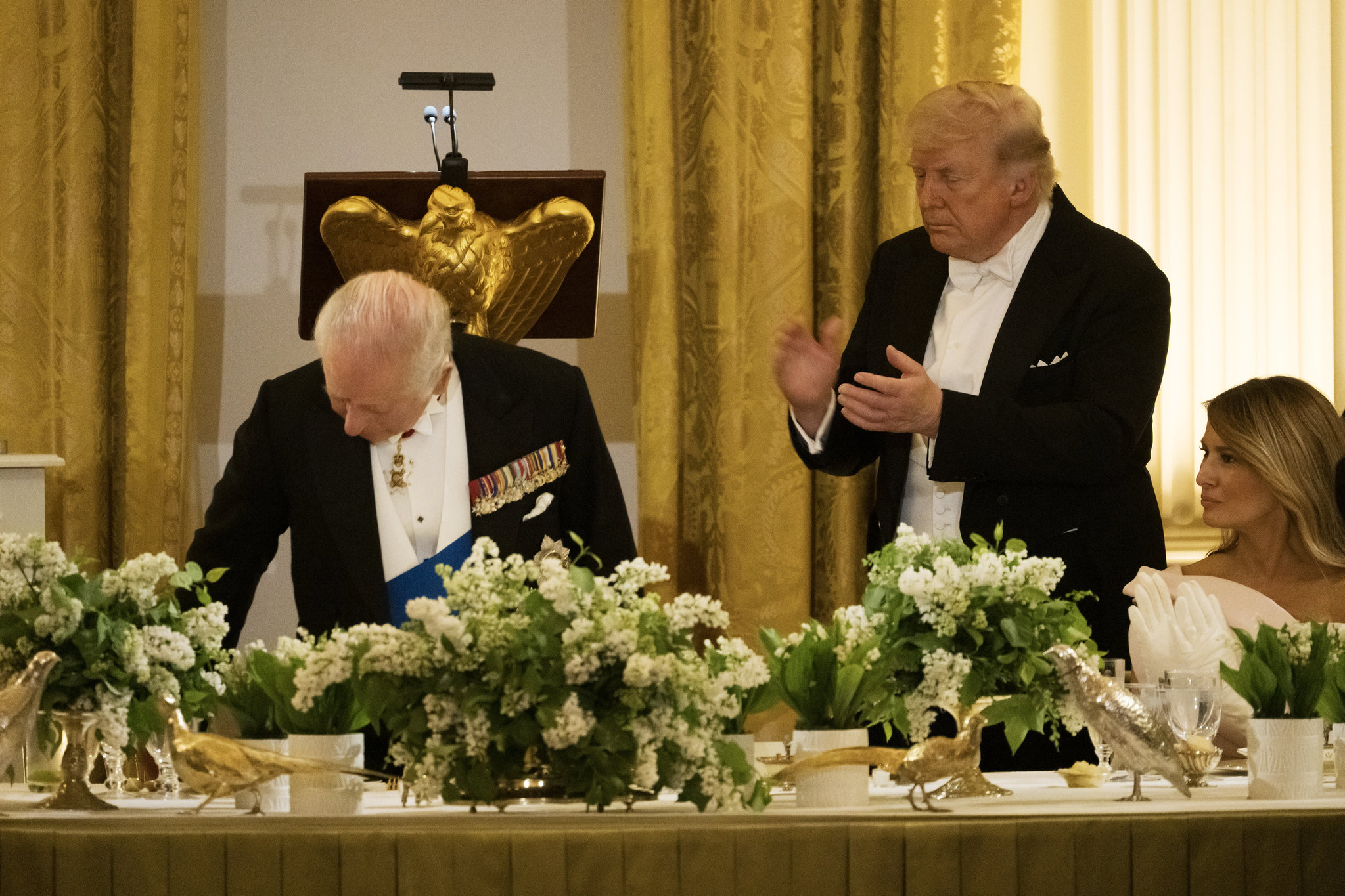 ABD Başkanı Donald Trump ile İngiltere Kralı Charles arasında Beyaz Saray'daki görkemli devlet yemeğinde dikkat çeken anlar yaşandı. Daily Mail'in haberine göre, diplomatik nezaketin gölgesinde ince ama sert mesajlar verildi; geceye ise Kral Charles'ın Trump'a yaptığı "Fransızca" göndermesi damga vurdu.