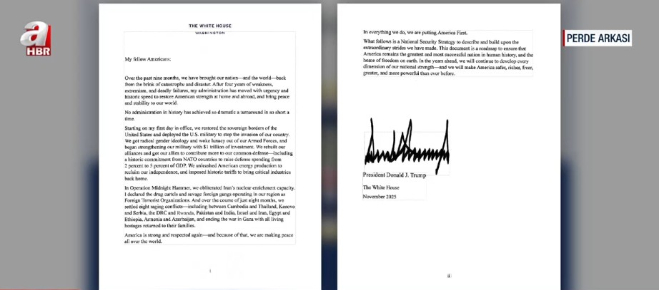 Amerika Birleşik Devletleri'nde ulusalcı ve muhafazakâr bir yönetim çizgisi benimseyerek taşları yerinden oynatan Trump Hükümeti, Ulusal Güvenlik Stratejisi Kasım 2025 belgesini yayımladı. ABD'nin bugüne kadar izlediği küreselci ve liberal yaklaşımın kökten terk edildiğine vurgu yapılan belgede, revize edilen bu misyona ilişkin çarpıcı detaylar yer aldı.