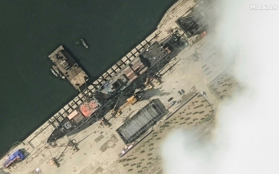 Gemi, arka tarafındaki taşıyıcı mekanizmanın erken ayrılması sonucu yana devrildi. Uydu görüntüleri, geminin yan yatmış hâlde, mavi örtülerle kaplandığını ve bazı bölümlerinin su altında kaldığını gösteriyor.