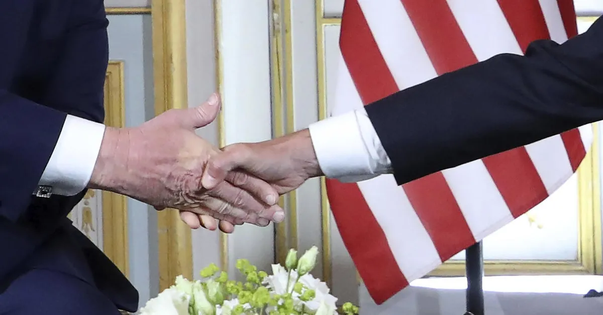 Görüşme esnasında ise ikili oturduktan sonra Marcon doğrudan ABD başkanına baktı ardından elini sıktı. Ancak yüzündeki ifadeye bakılarak Trump'ın hiç de rahat olmadığı görülüyordu. Trump'ın ifadesi ise sonradan anlaşıldı.
