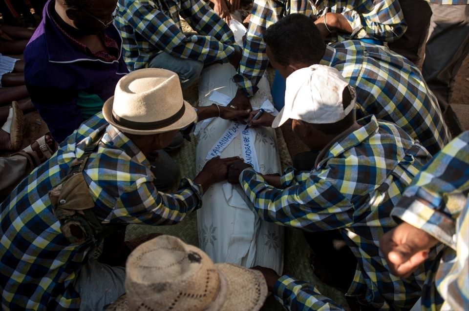 Madagaskar'ın başkenti Antananarivo'nun 50km uzaklığında bulunan Ambohitseheno kentindeki Nanjakana Morarano köyünde mezardan çıkarma geleneği sürdürülüyor.