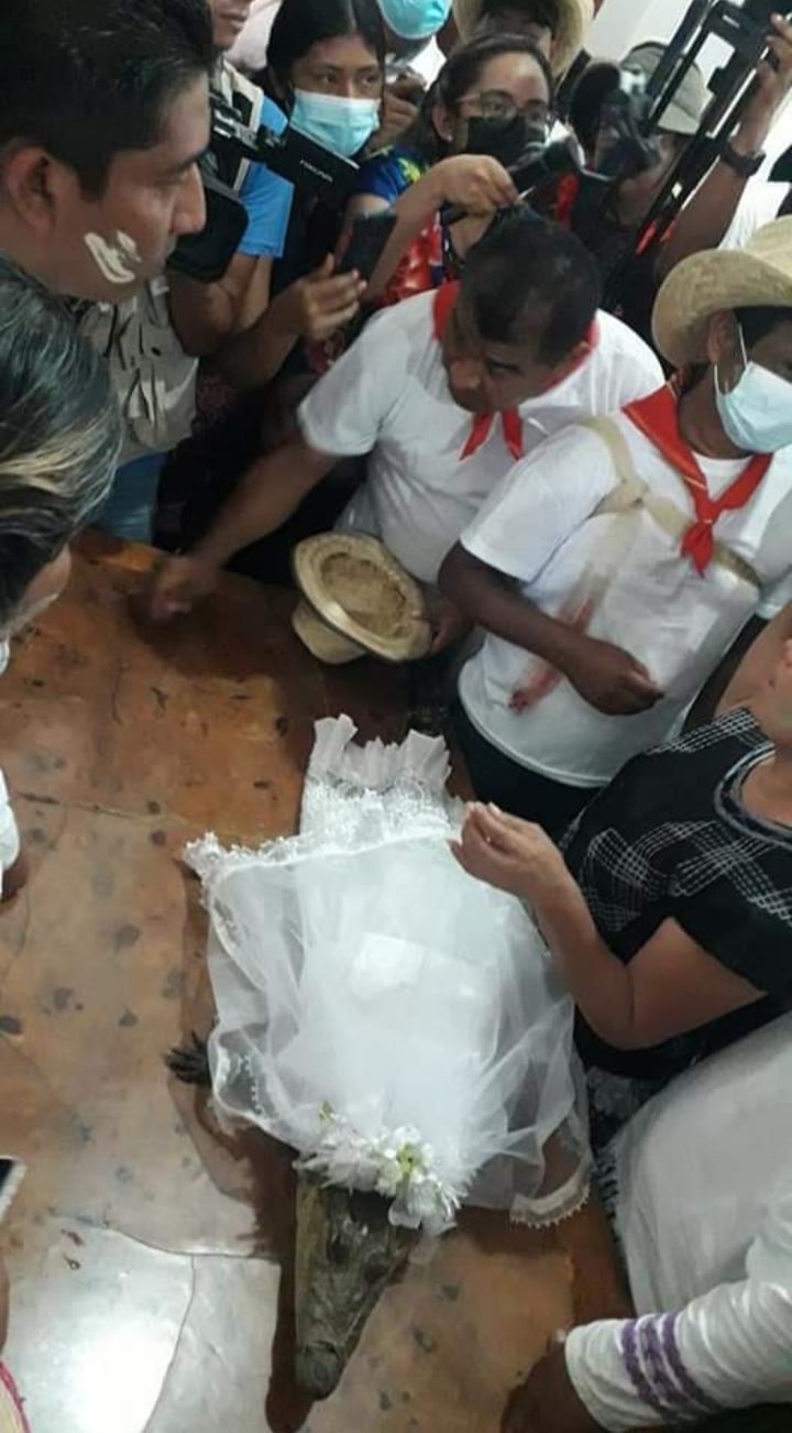 Meksika'daki yerli halkla ait bir gelenek olarak gerçekleştirilen düğüne vatandaşlar yoğun ilgi gösterdi. Müzik ve danslar eşliğinde düzenlenen törende timsah Prenses Alicia Rubi'ye beyaz gelinlik giydirildi.