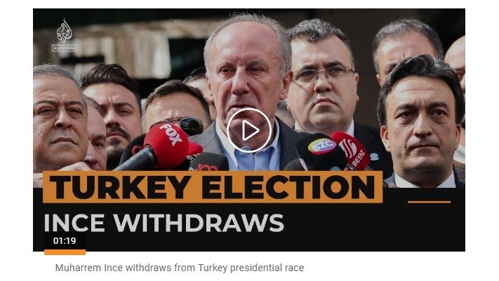 Al Jazeera ise "Oylamaya günler kalan İnce, cumhurbaşkanlığı yarışından çekildi" dedi. Haberin devamında ise yaşananların oldukça 'dramatik' olduğundan bahsedildi.