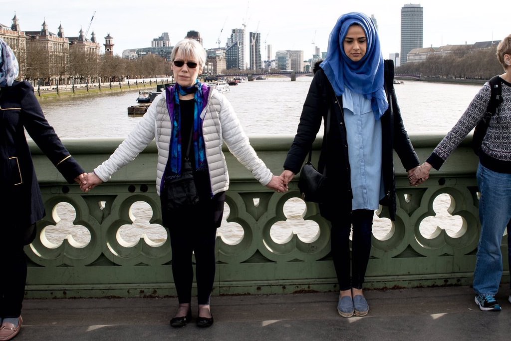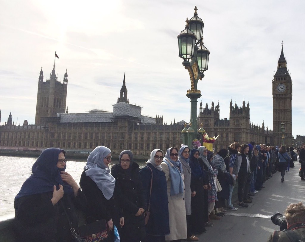 Başkent Londra'da geçtiğimiz Çarşamba günü yaşanan terör saldırını kınayan Müslüman kadınlar saldırının gerçekleştiği Westminister Köprüsü üzerinde toplanarak teröre karşı birlik oldu.