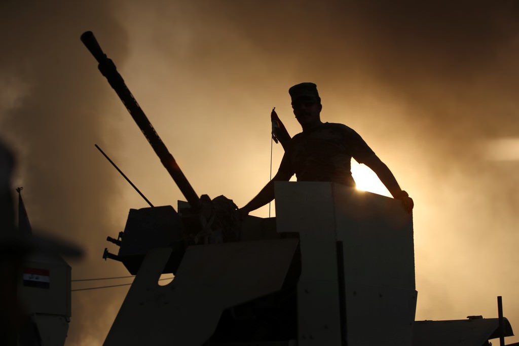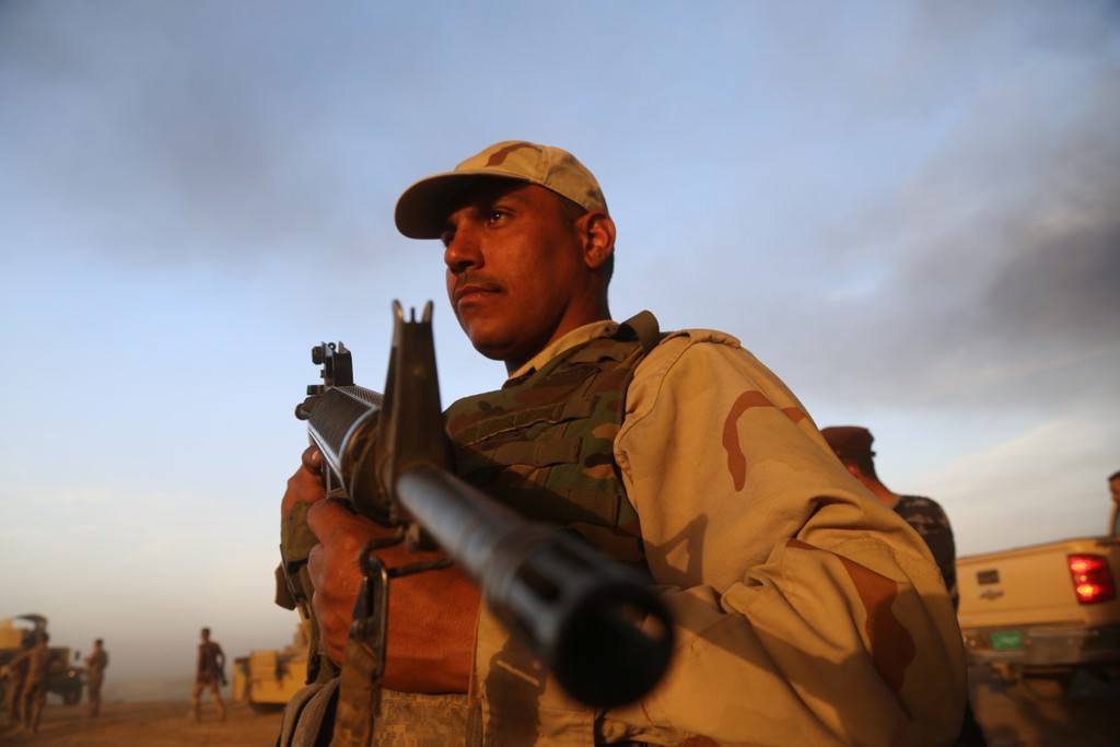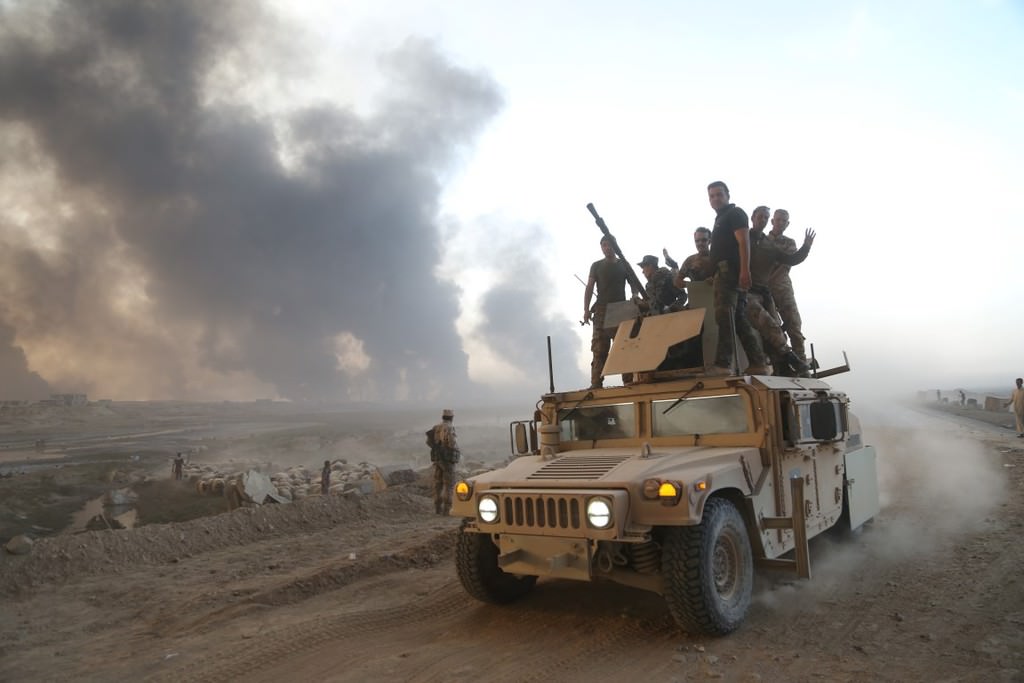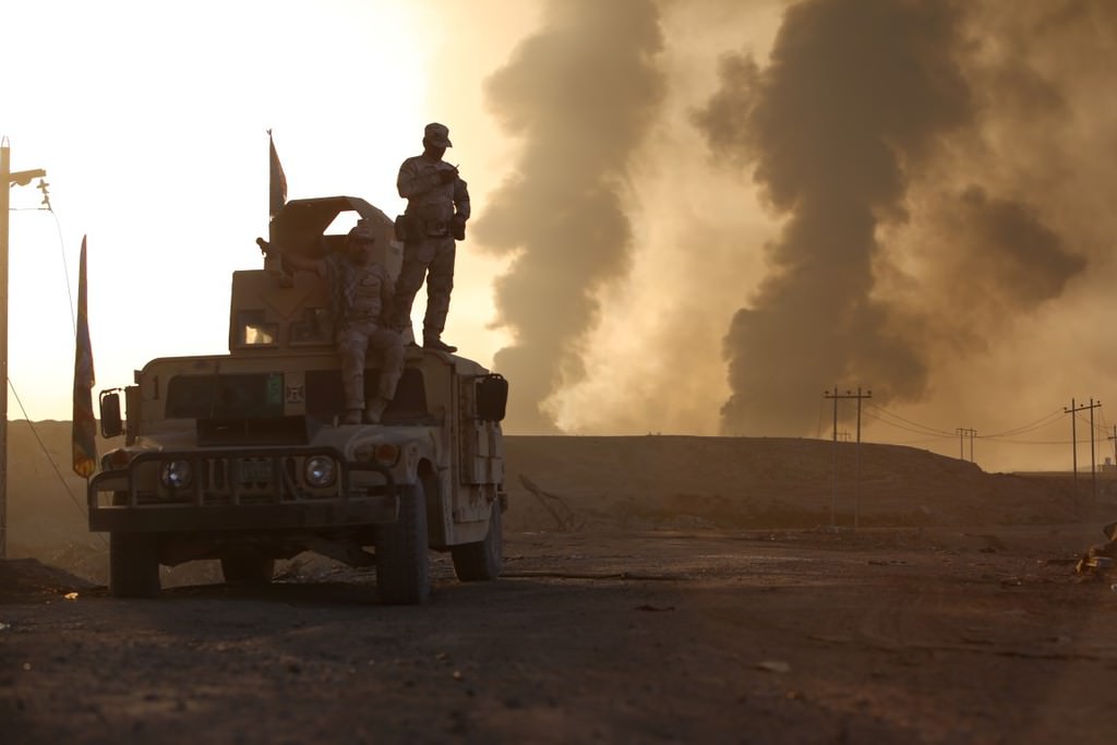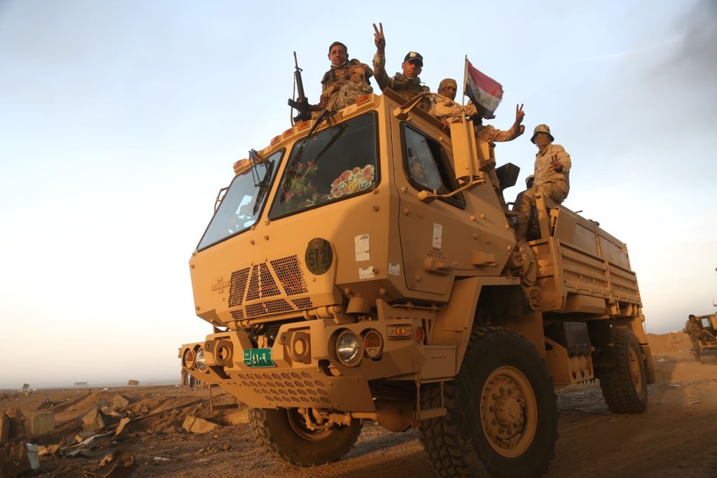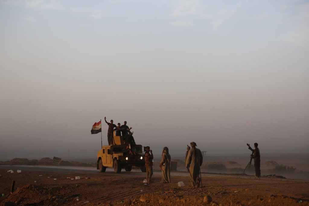 Musul'u DEAŞ'tan temizleme operasyonu kapsamında Irak ordusuna bağlı askerler, Hut köyünde devam eden operasyona katılmak üzere bölgeye intikal etti.