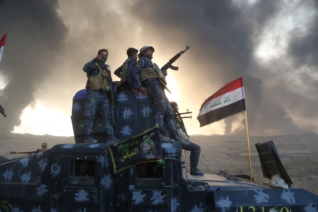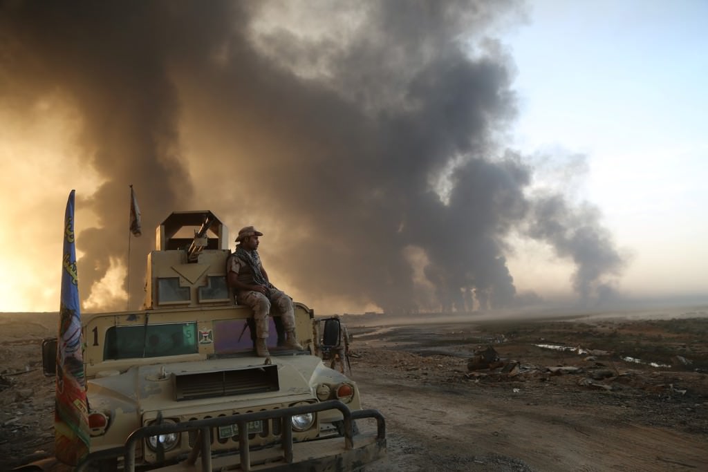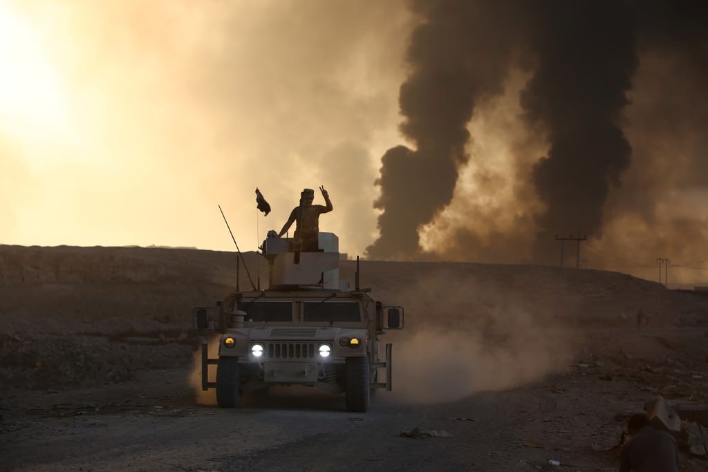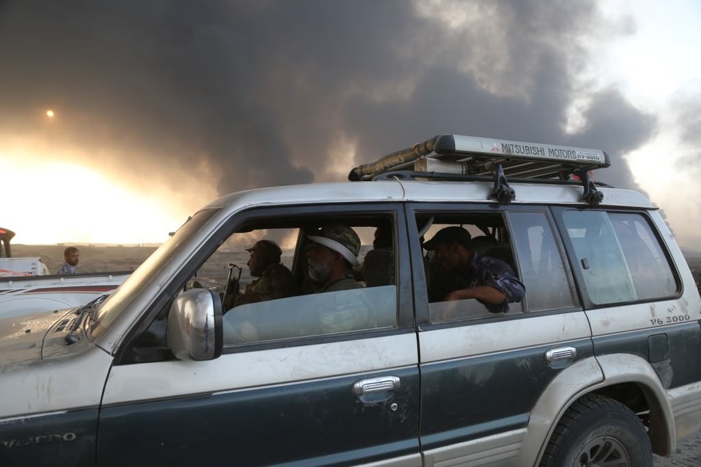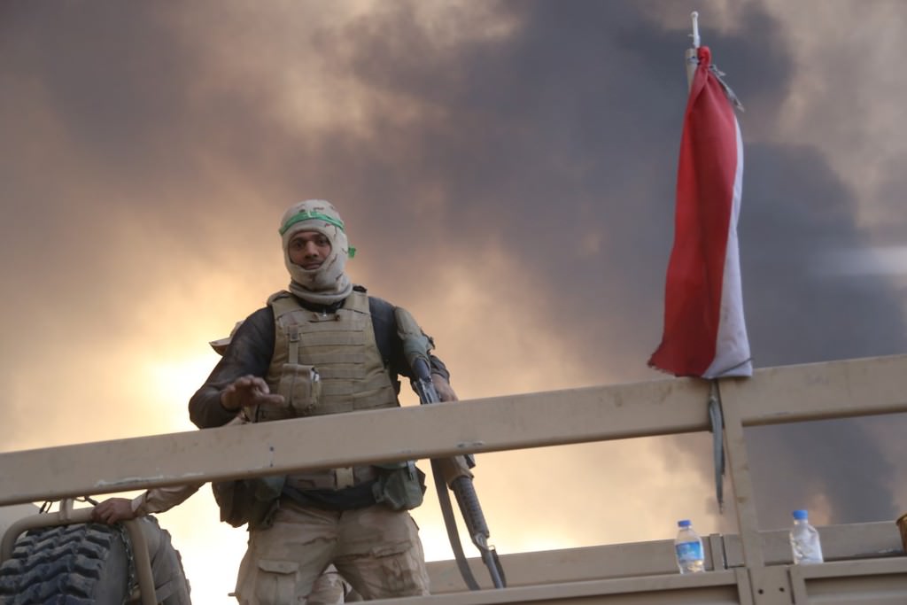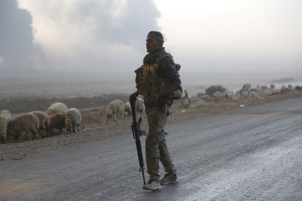 Musul'u DEAŞ'tan temizleme operasyonu kapsamında Irak ordusuna bağlı askerler, Hut köyünde devam eden operasyona katılmak üzere bölgeye intikal etti.