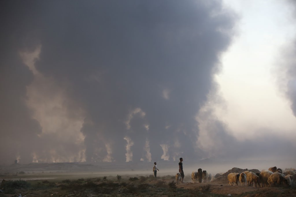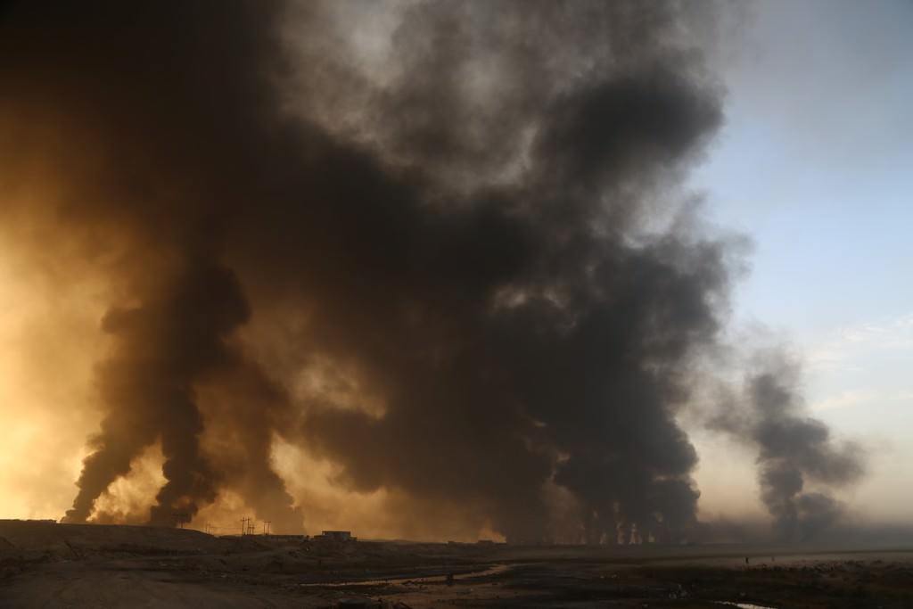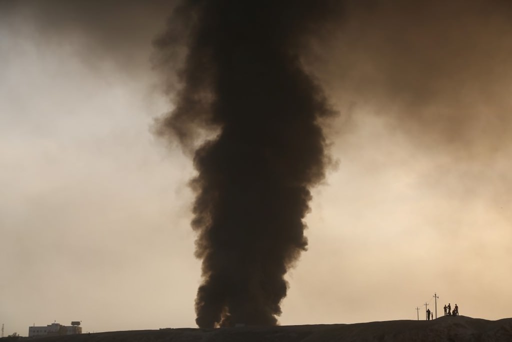 Terör örgütü DEAŞ'in Musul operasyonunda petrol kuyularını ateşe vermesinden korkuluyordu. Ve o korkulan oldu.