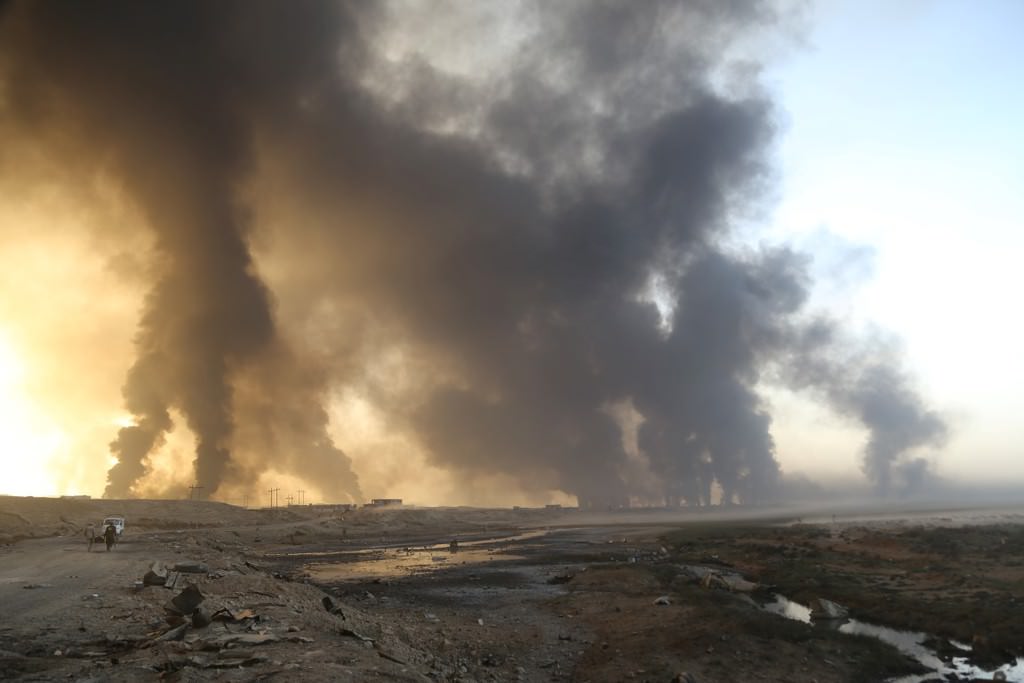 Terör örgütü DEAŞ, Haziran 2014'ten bu yana elinde tuttuğu Irak'ın Musul kentinde bağlı en büyük nahiyesi Kayyara'nın kurtarılmasının ardından petrol kuyularını ateşe verdi.
